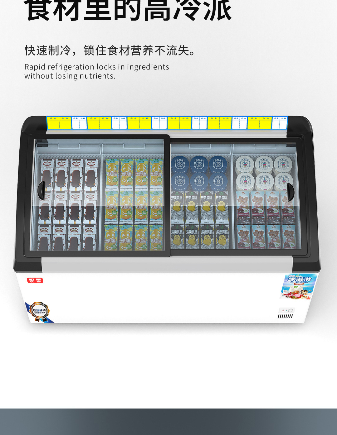 아이스크림 아이스크림 캐비닛 상업용 투명 유리 커버 슬라이딩 도어 슈퍼마켓 디스플레이 캐비닛 냉동고 냉동고