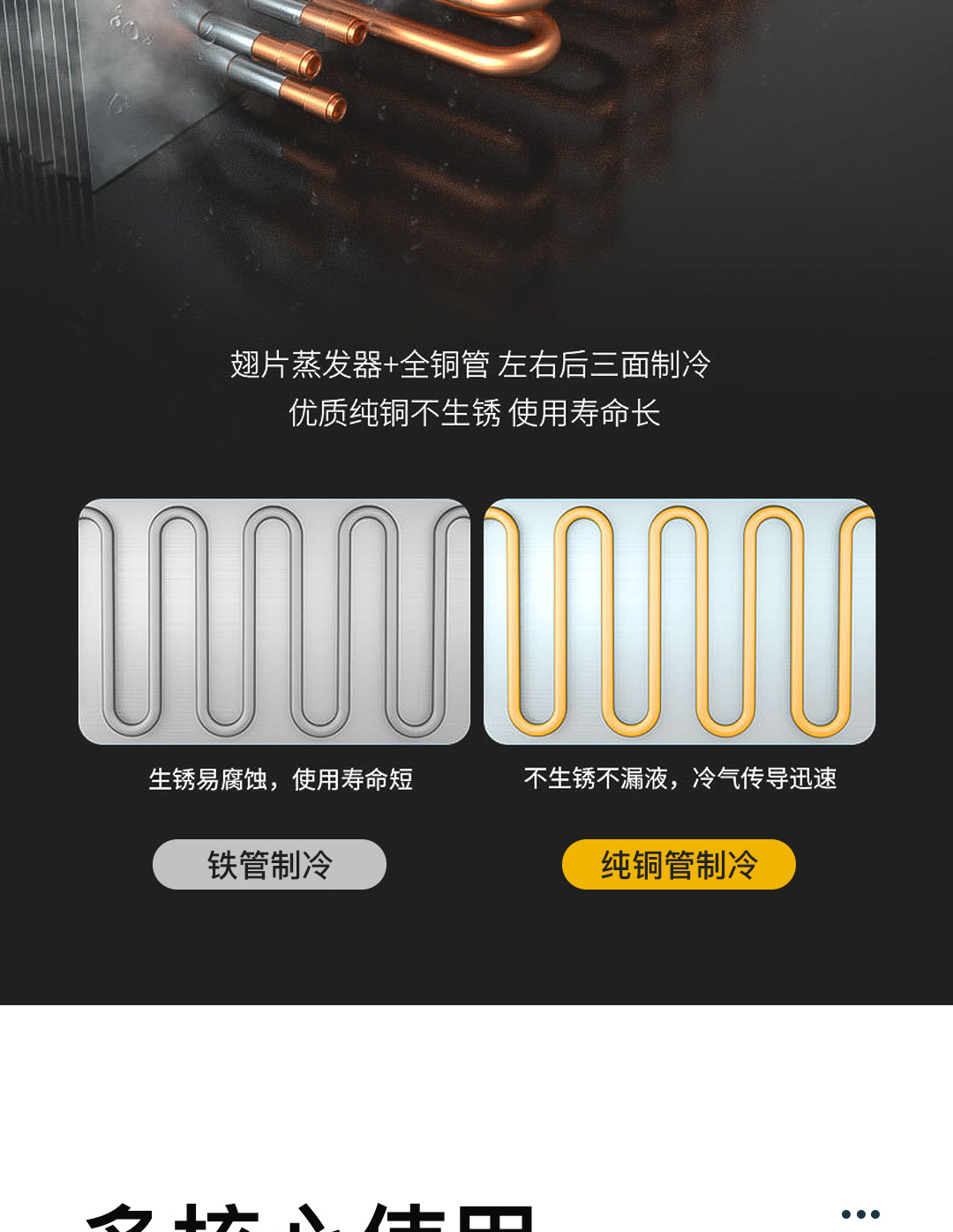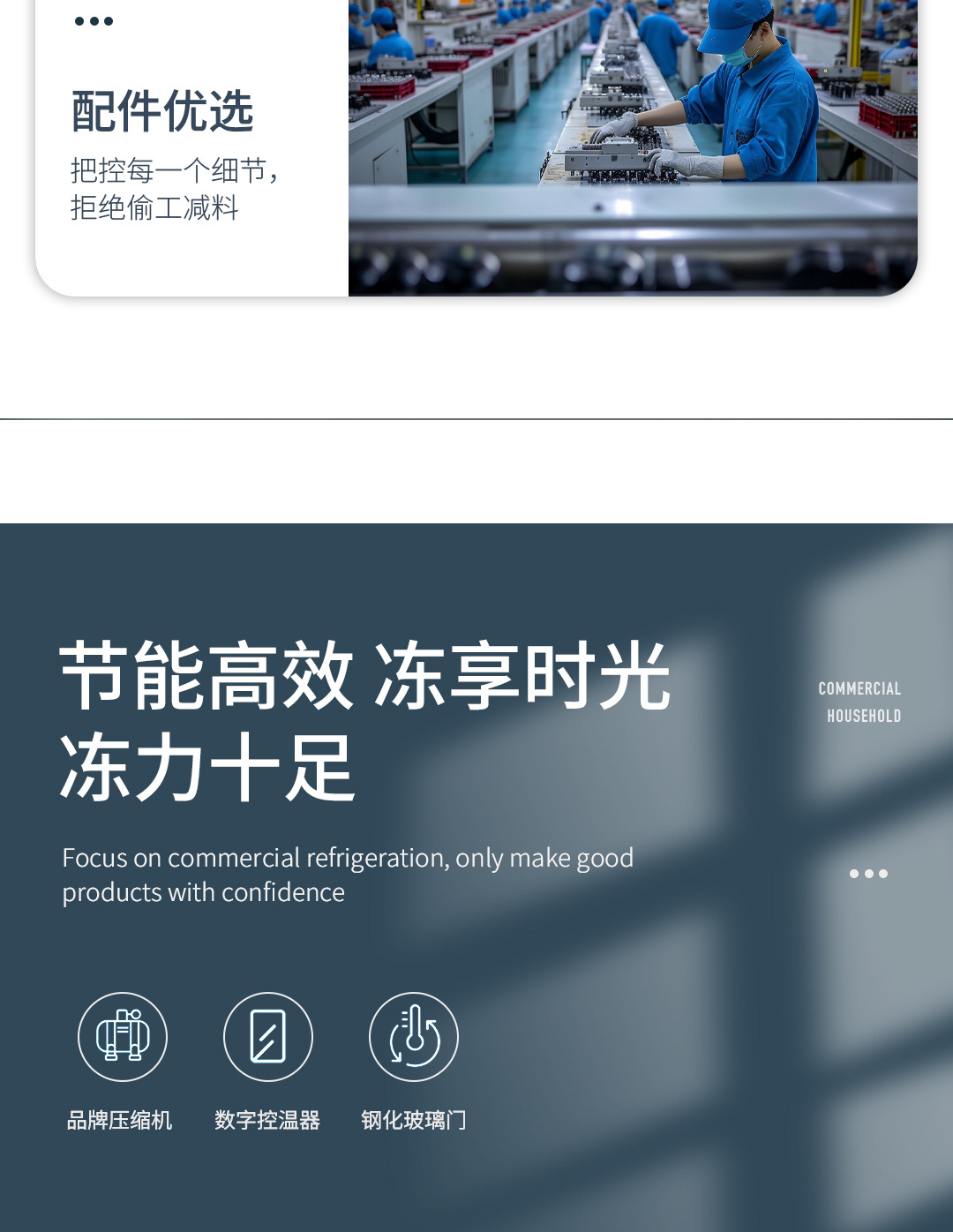 • 순수 구리 튜브 유리 도어 및 뚜껑 도어 이중 단열 길이 1030x 너비 595x 높이 830mm 이중 온도