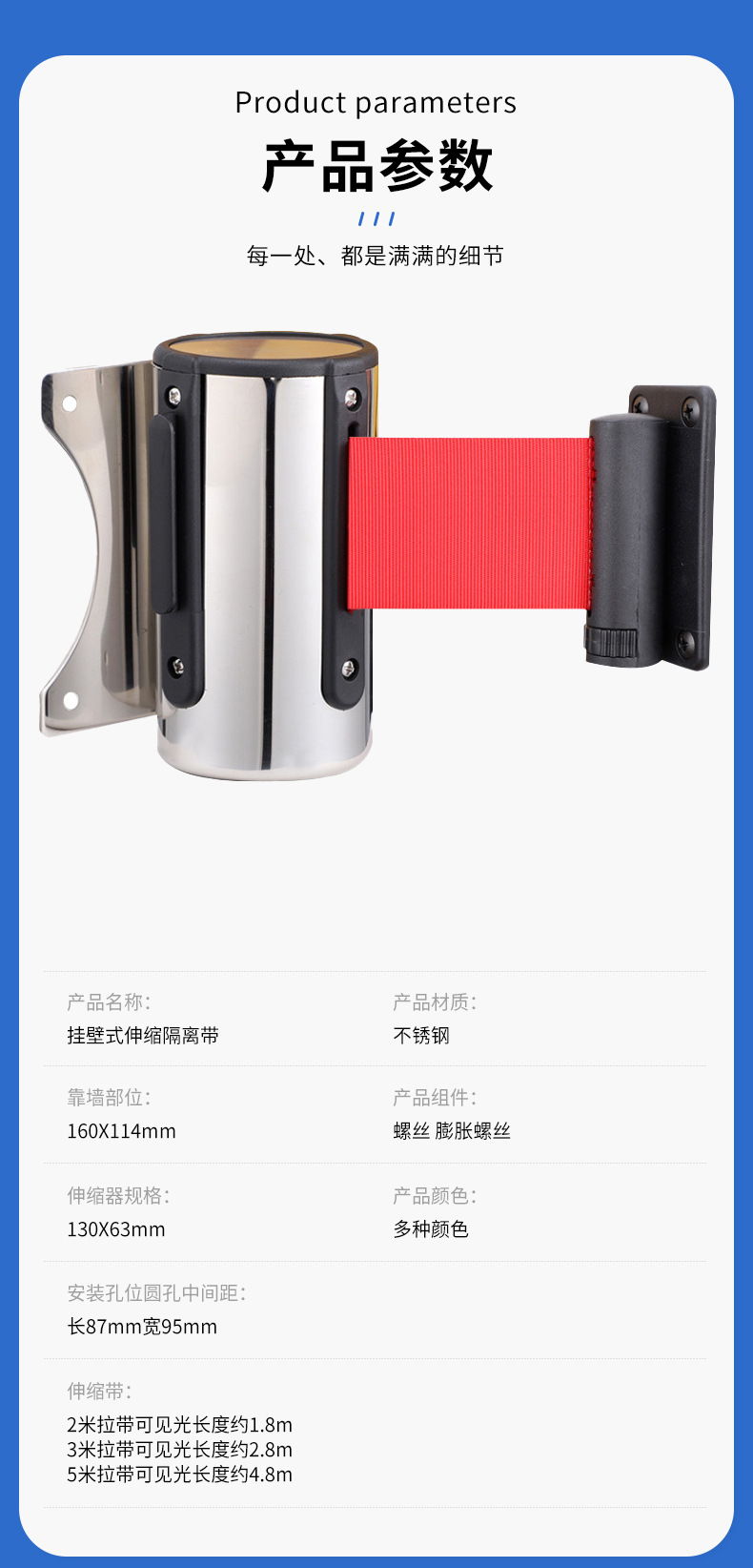 스테인레스 스틸 벽걸이 형 1.0m 라인 텔레스코픽 벨트 벽걸이 형 이동식 울타리 계산대 가드 레일 격리 벨트