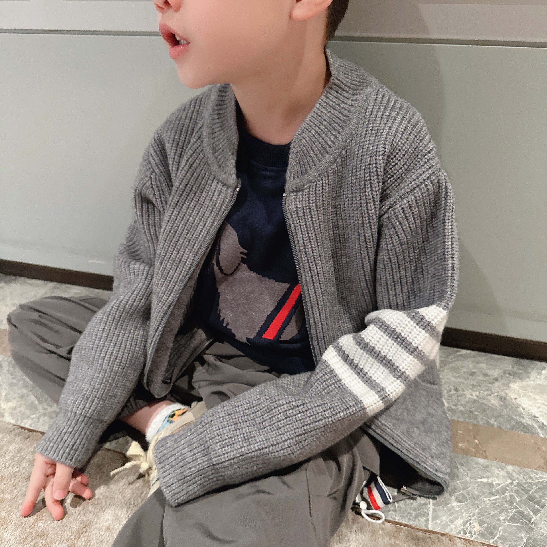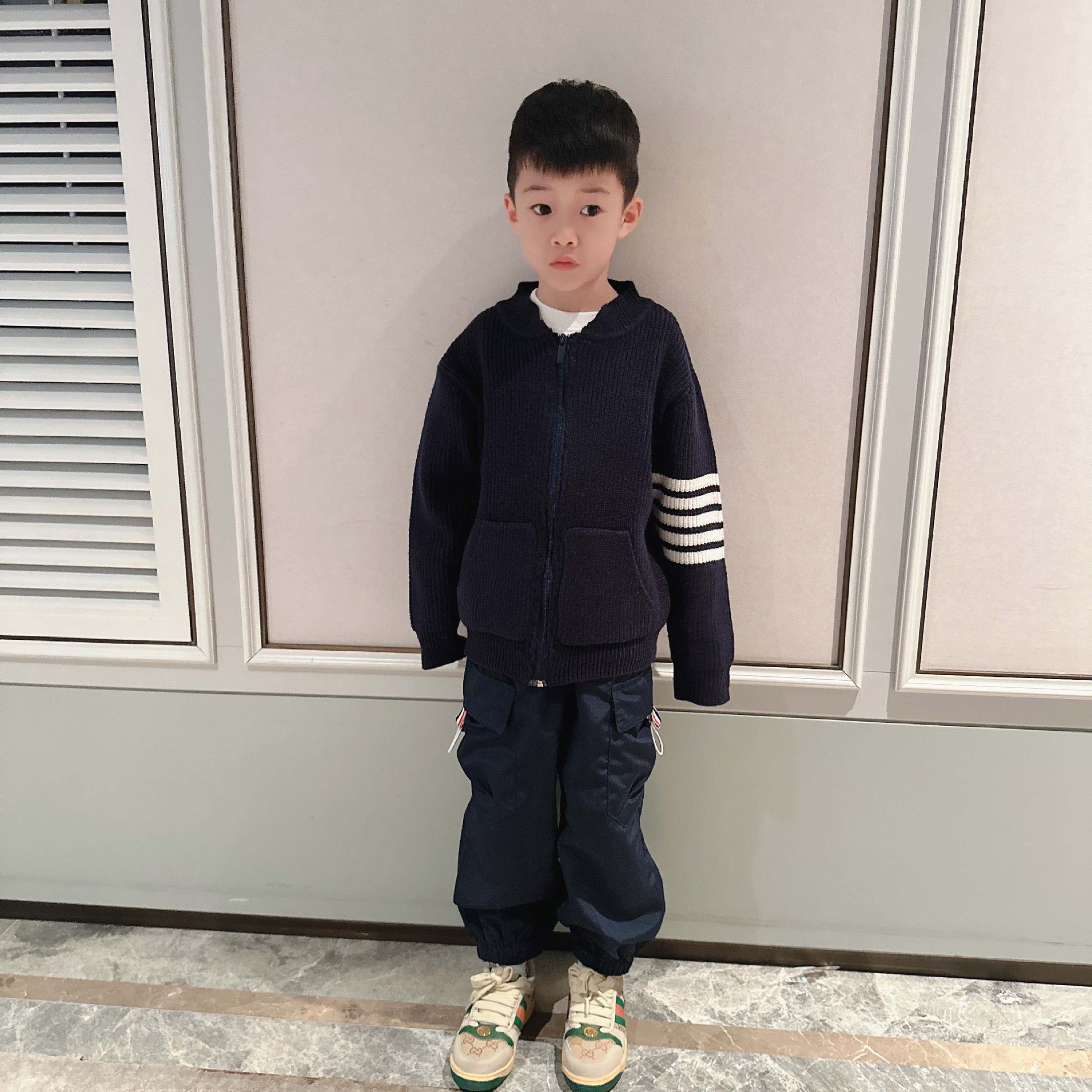 24 가을 겨울 신작 지퍼 카디건 코트 스웨터 4 바 포켓 소년 소녀 큰 어린이 스웨터 고급 어린이