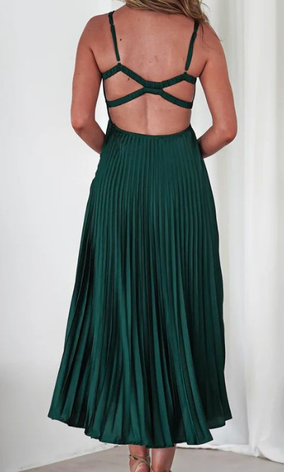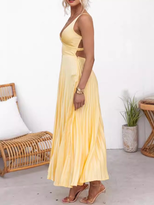 TEMU2025 독립 스테이션 유럽과 미국의 새로운 슬링 폴딩 여성 슬링 우아한 섹시한 연회 백리스 원피스