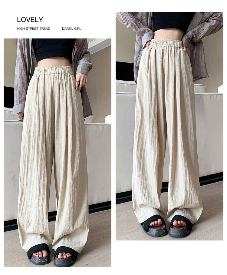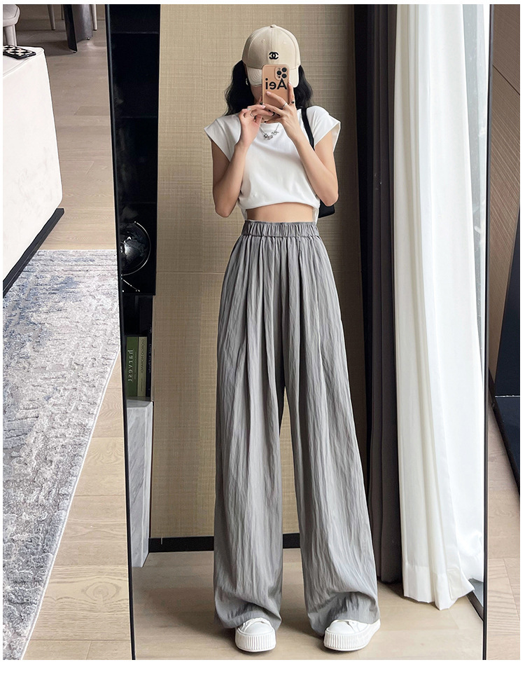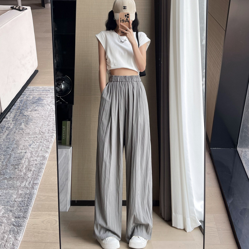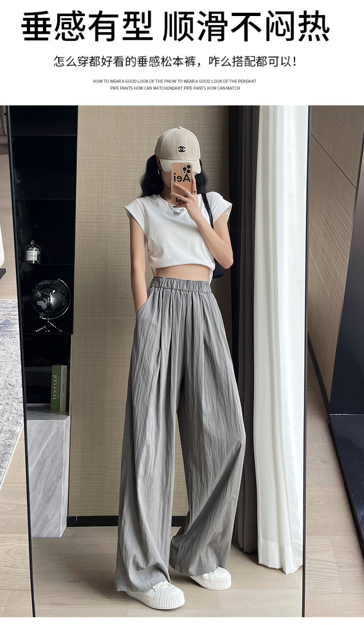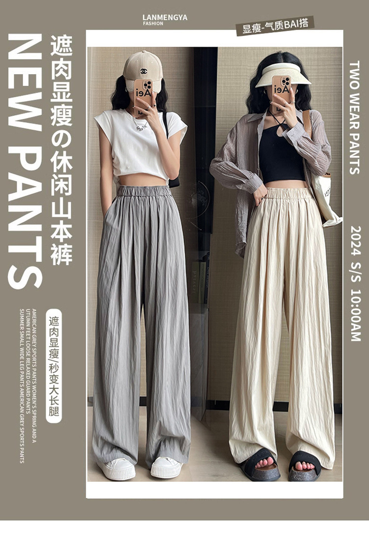 2025 새로운 우유 푸 야마모토 바지 여성 여름 얇은 높은 허리 더미 캐주얼 루즈 스트레이트 바지 아이스 실크 와이드 다리 바지스토어 가기