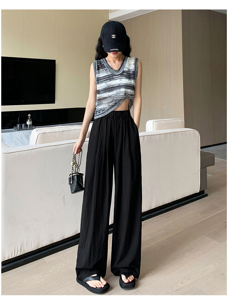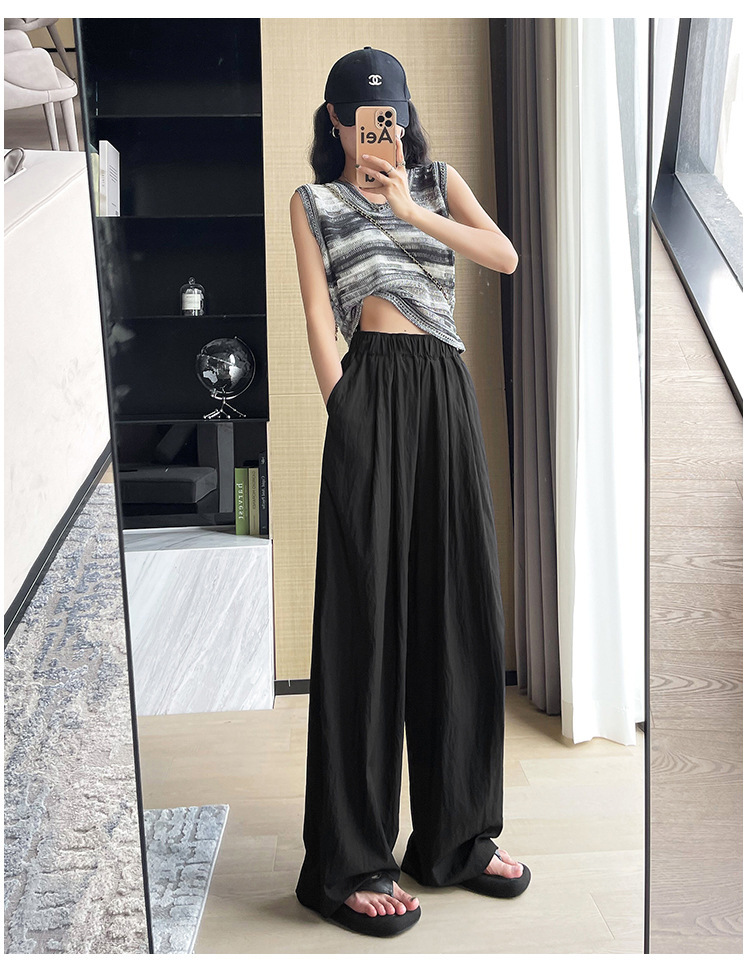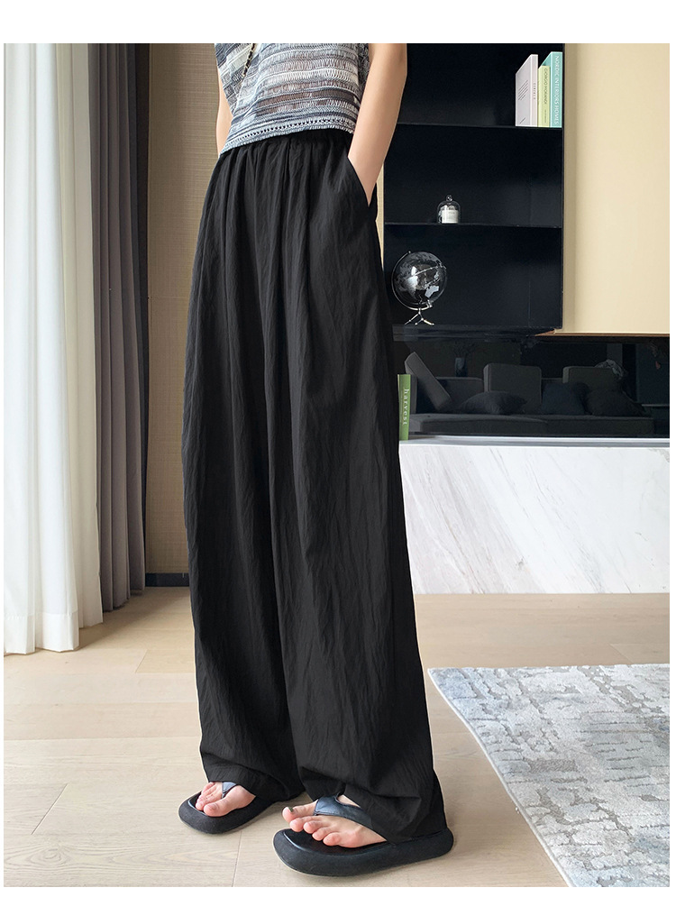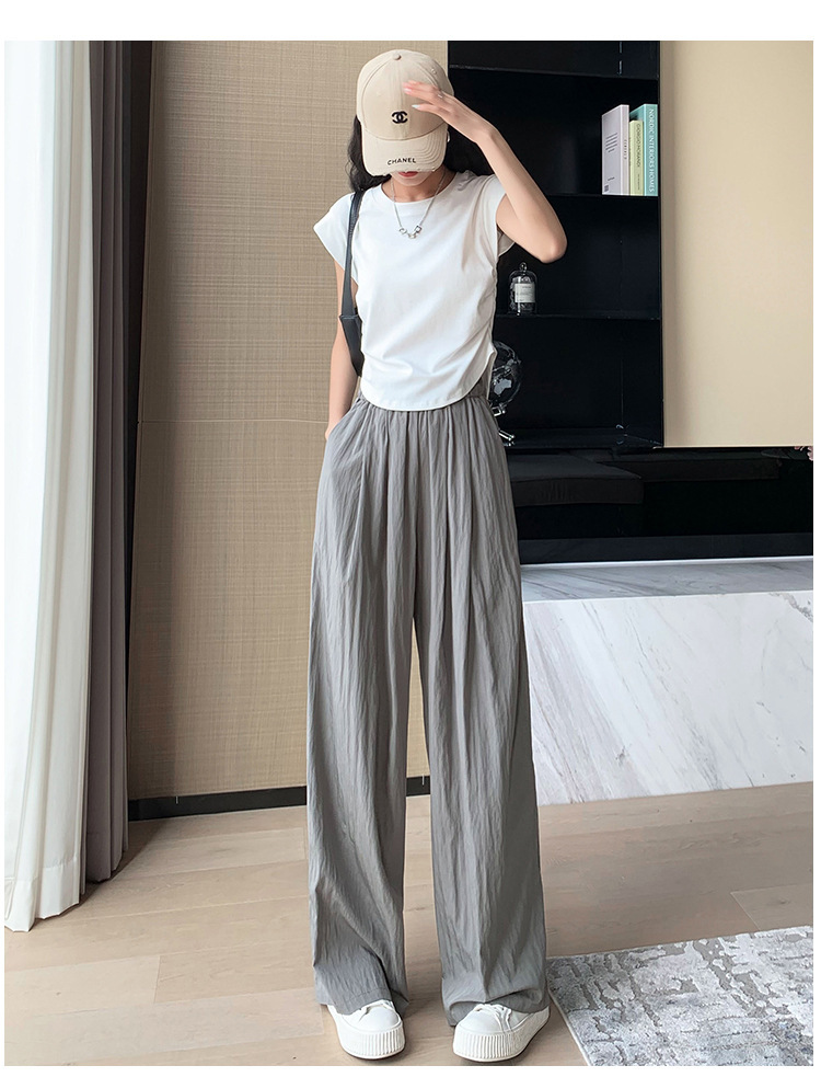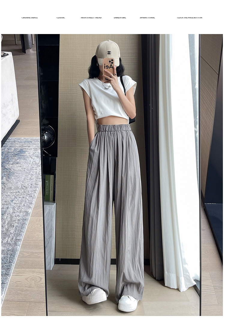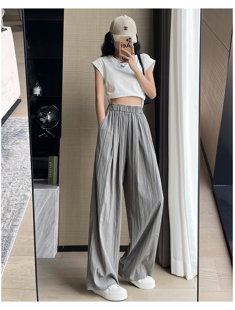 2025 새로운 우유 푸 야마모토 바지 여성 여름 얇은 높은 허리 더미 캐주얼 루즈 스트레이트 바지 아이스 실크 와이드 다리 바지스토어 가기