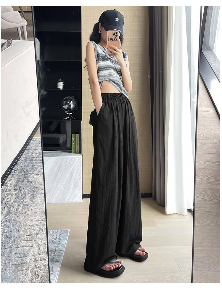 2025 새로운 우유 푸 야마모토 바지 여성 여름 얇은 높은 허리 더미 캐주얼 루즈 스트레이트 바지 아이스 실크 와이드 다리 바지