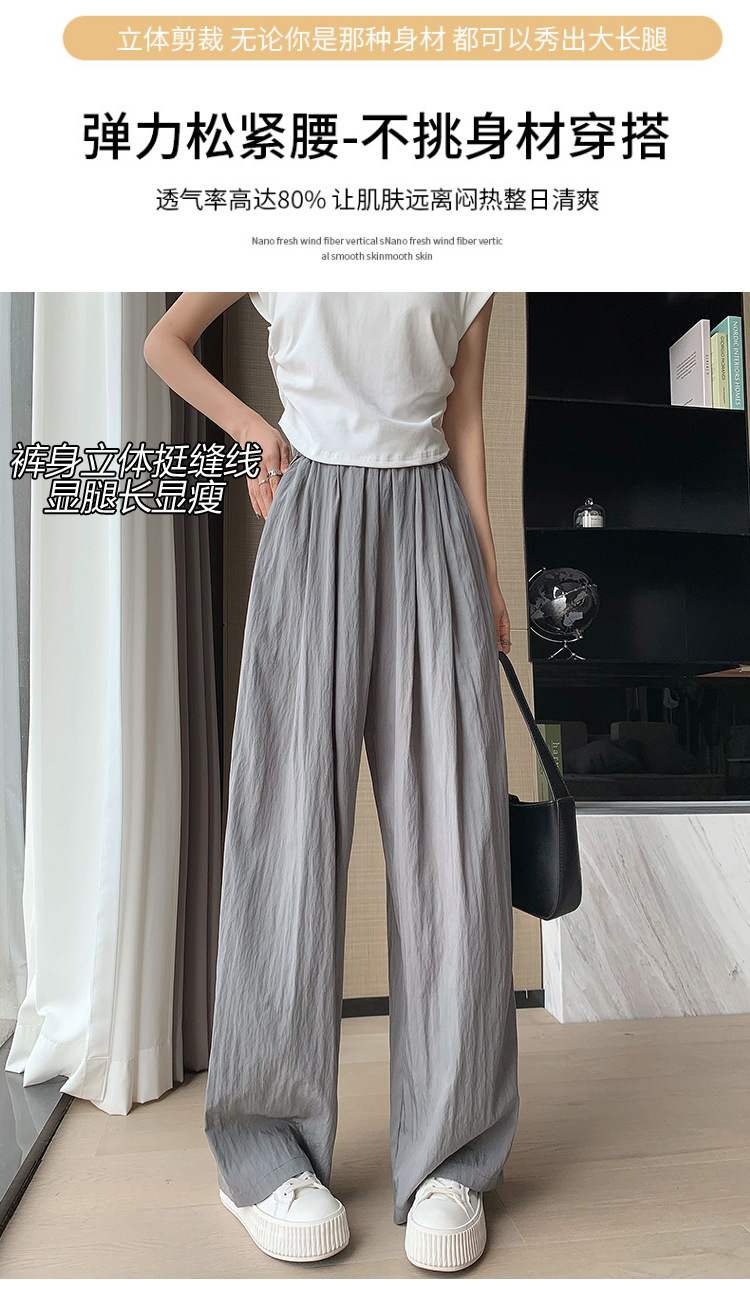 2025新款奶芙山本裤女夏季薄款高腰垂感休闲宽松直筒裤冰丝阔腿裤