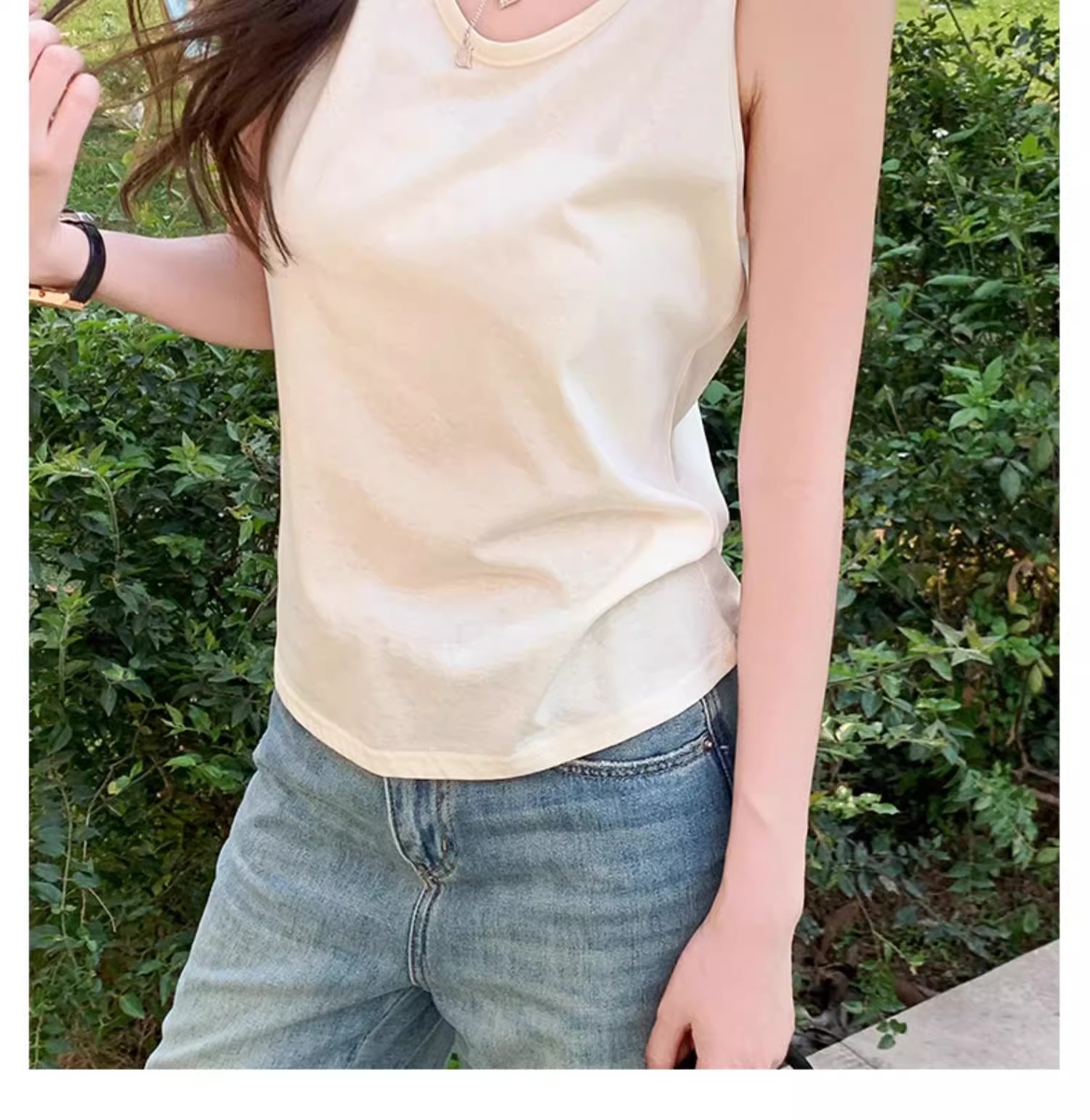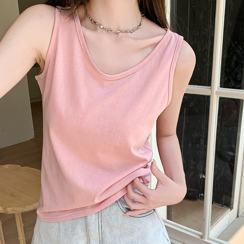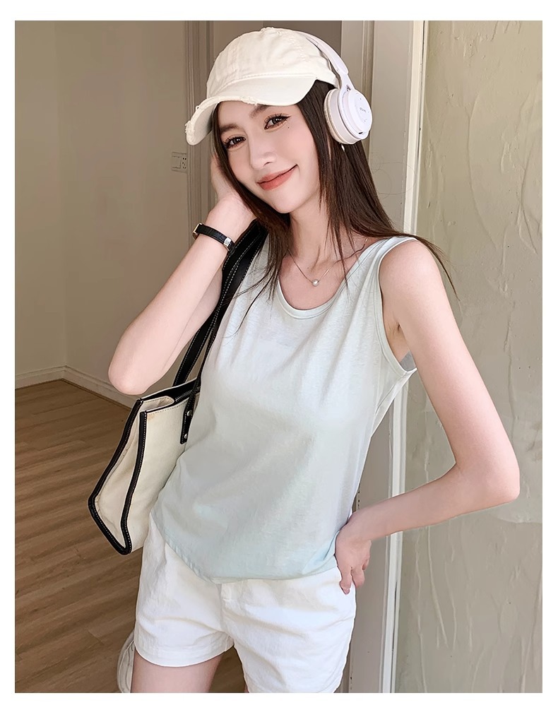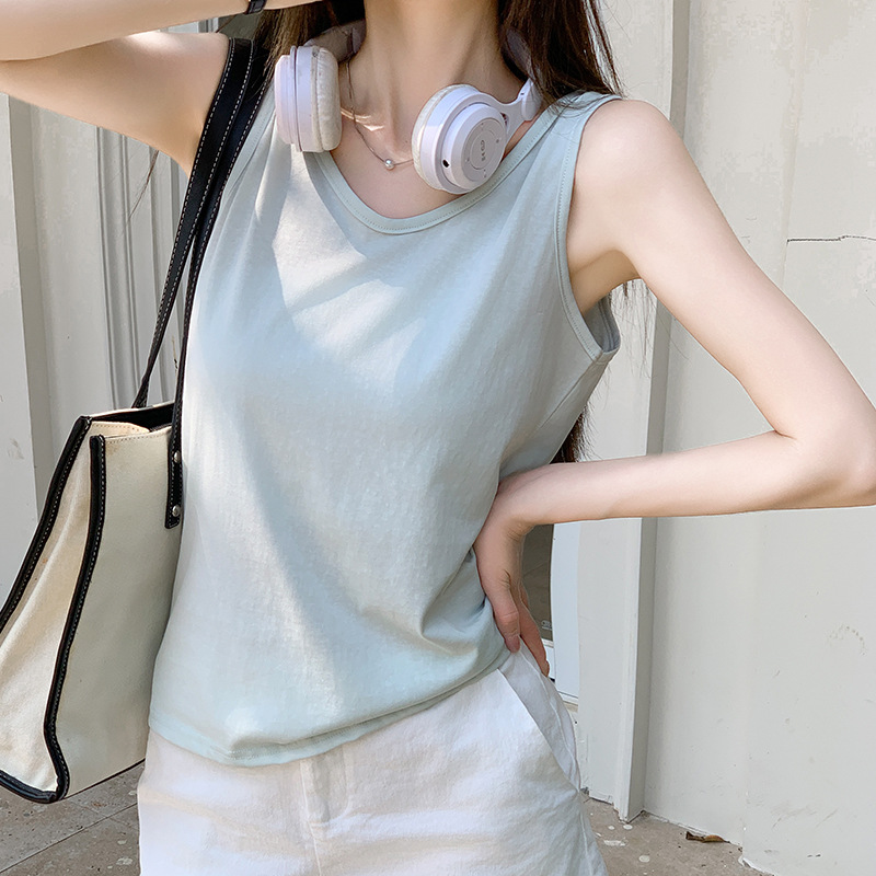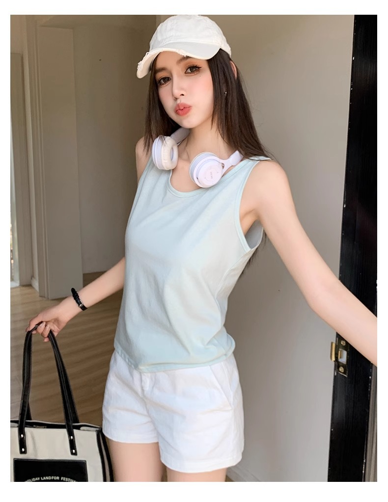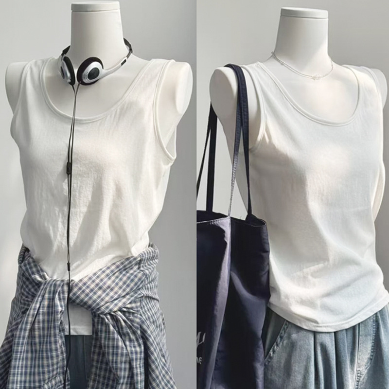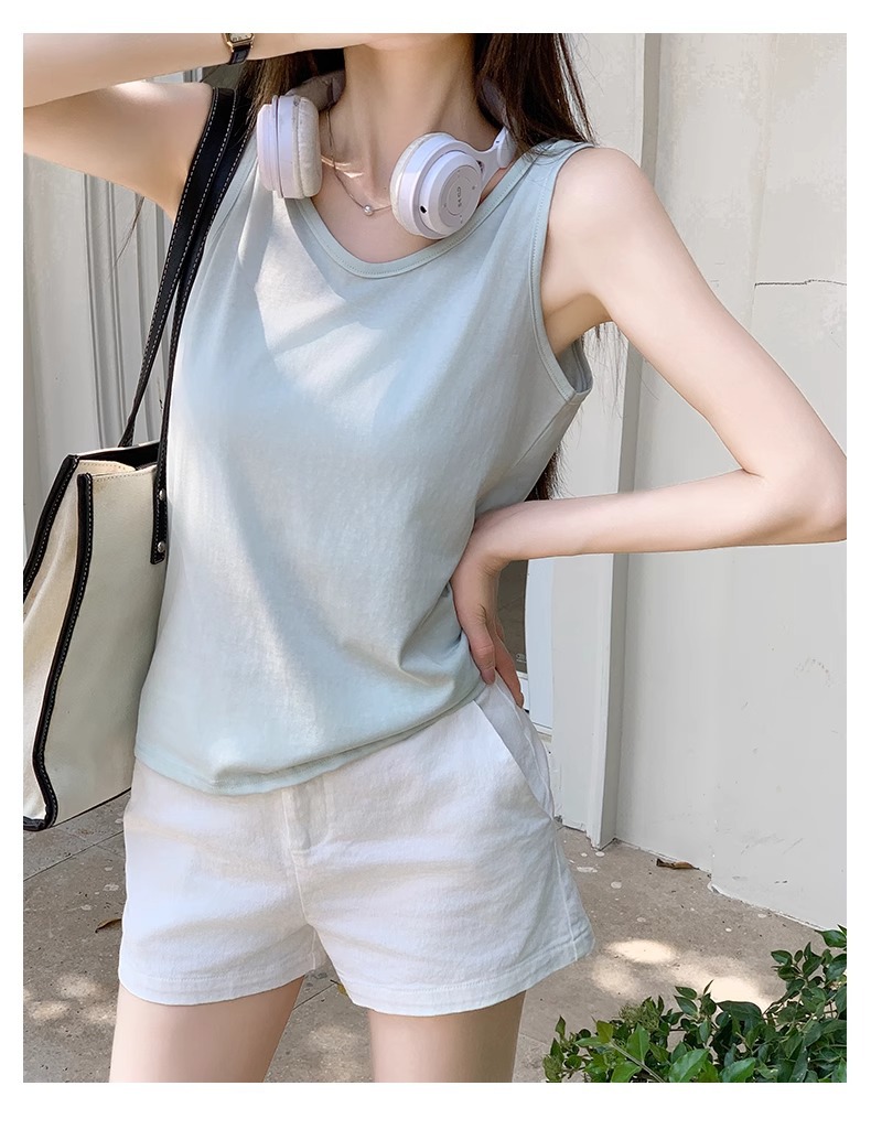 화이트 V 넥 티셔츠 여성 여름 경량 루즈 슬림 스포츠 조끼 미국 스타일 편안한 게으른 스타일 민소매 긴 탑스토어 가기
