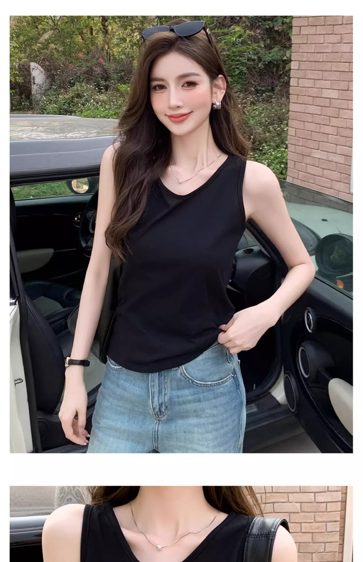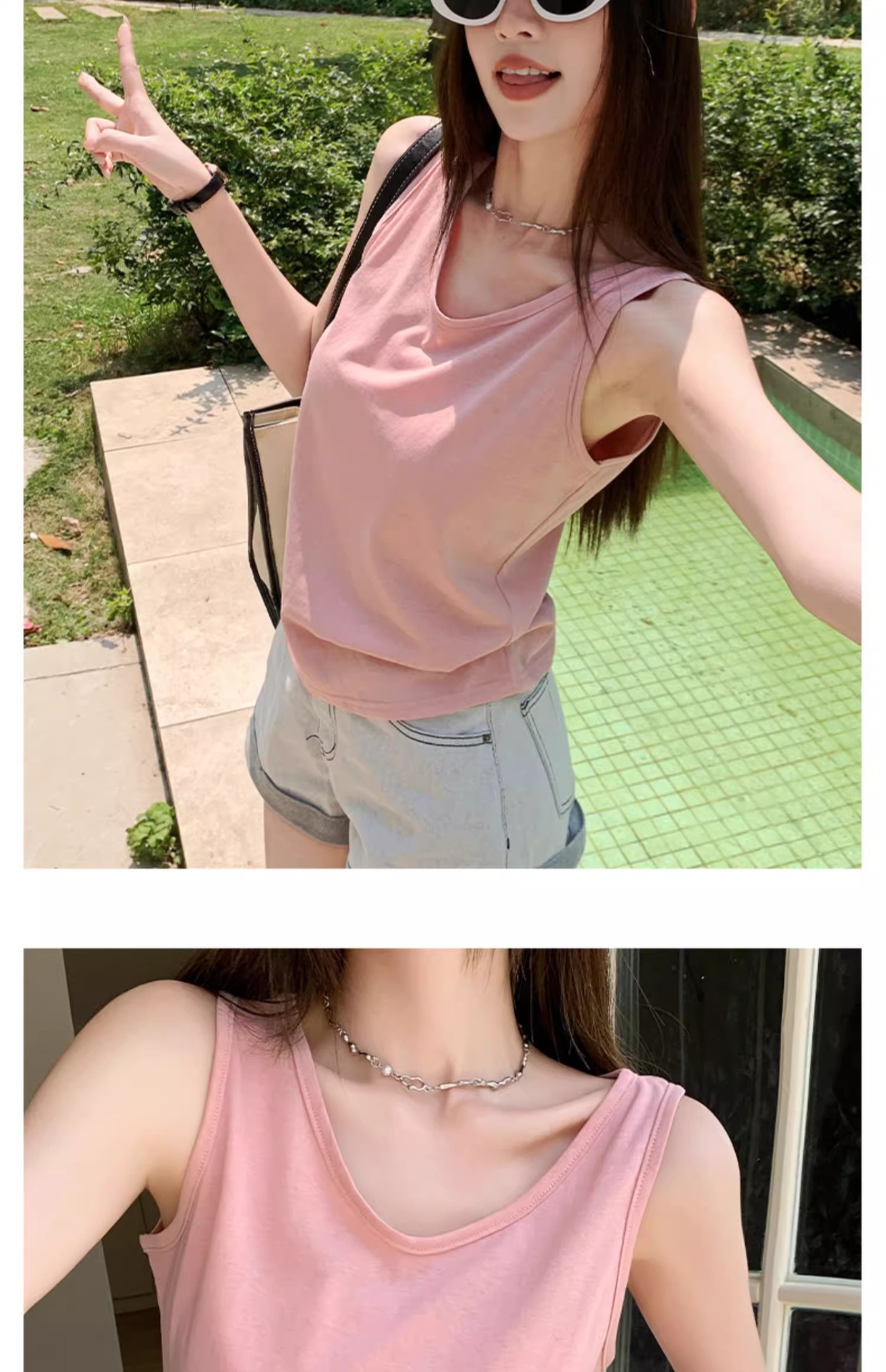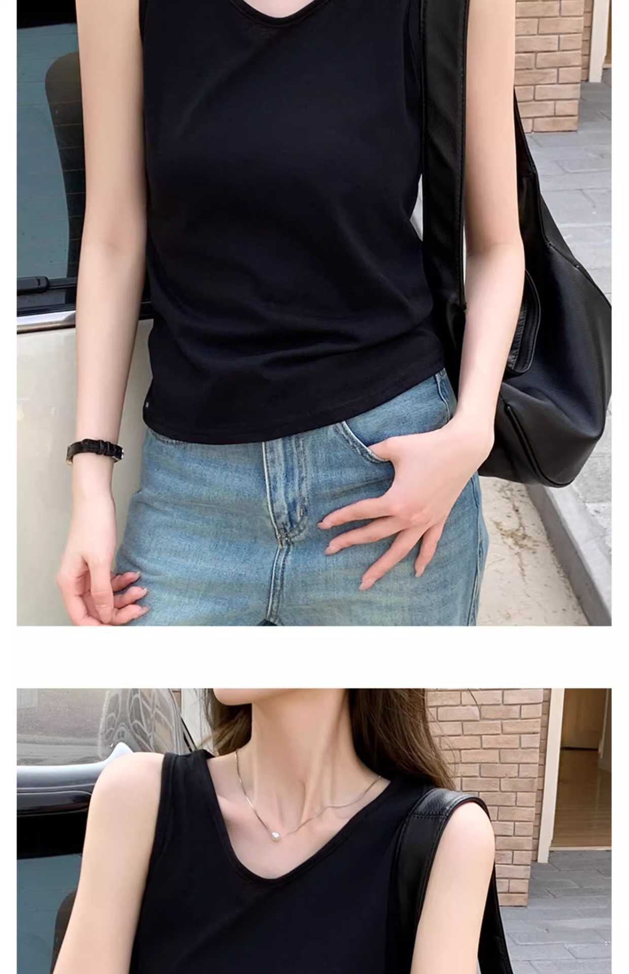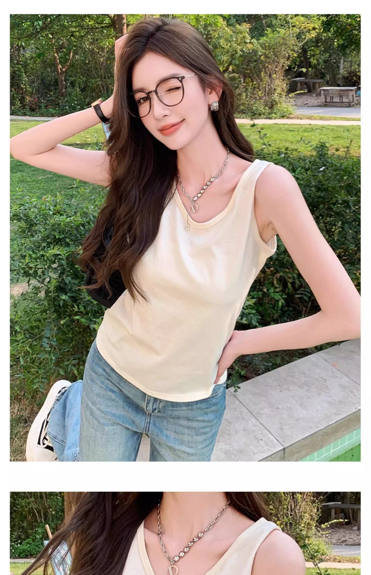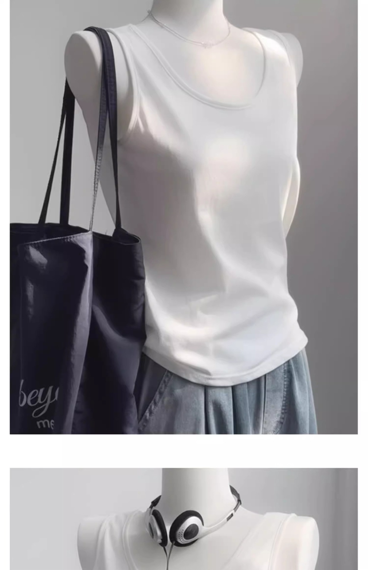 화이트 V 넥 티셔츠 여성 여름 경량 루즈 슬림 스포츠 조끼 미국 스타일 편안한 게으른 스타일 민소매 긴 탑스토어 가기