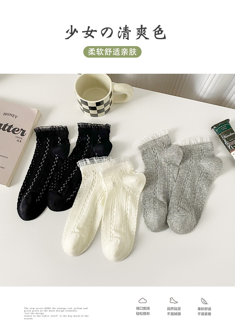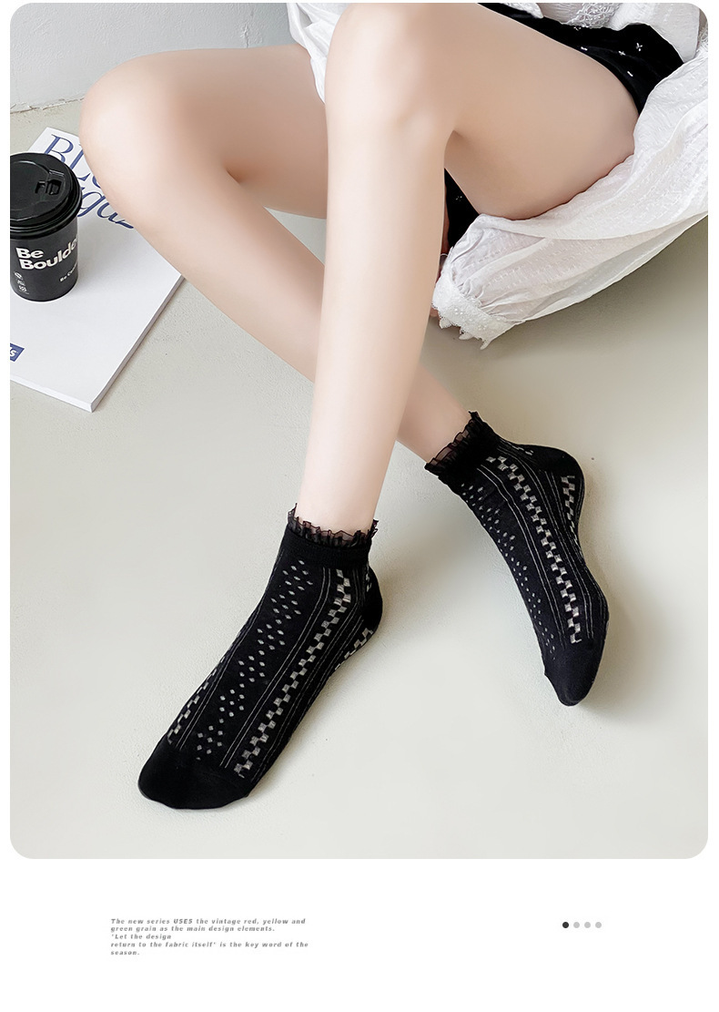 봄과 여름 중공 레이스 짧은 튜브 여성용 양말 양말 여성의 초박형 중공 메쉬 통기성 귀여운 보이지 않는 면 양말