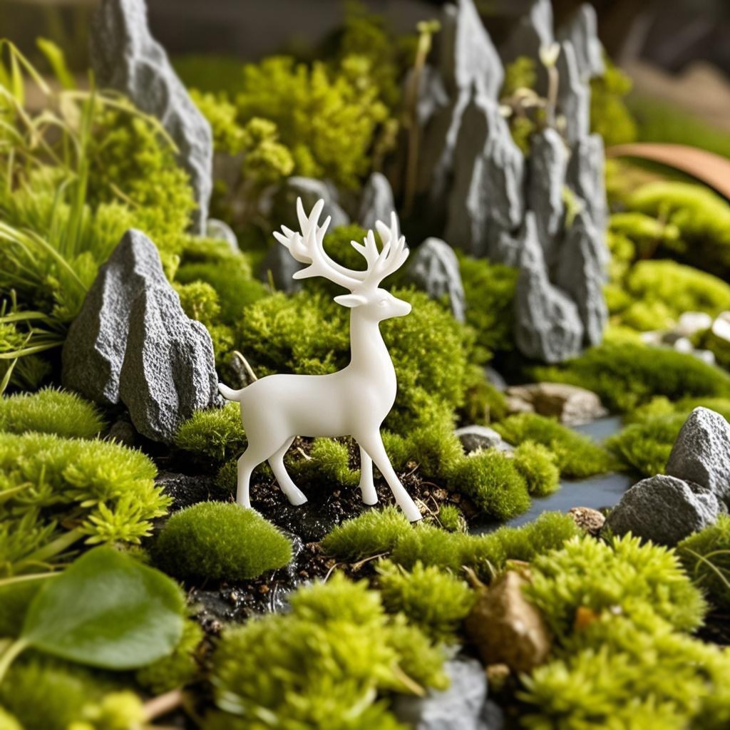 • 머리를 숙인 하얀 서 있는 사슴의 길이는 9cm이다.
