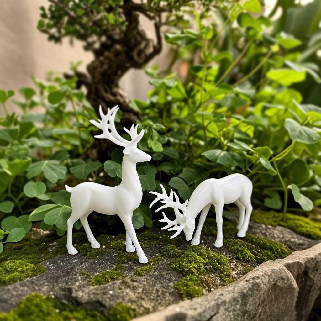 • 머리 위로 서 있는 흰색 사슴 높이 9.5cm