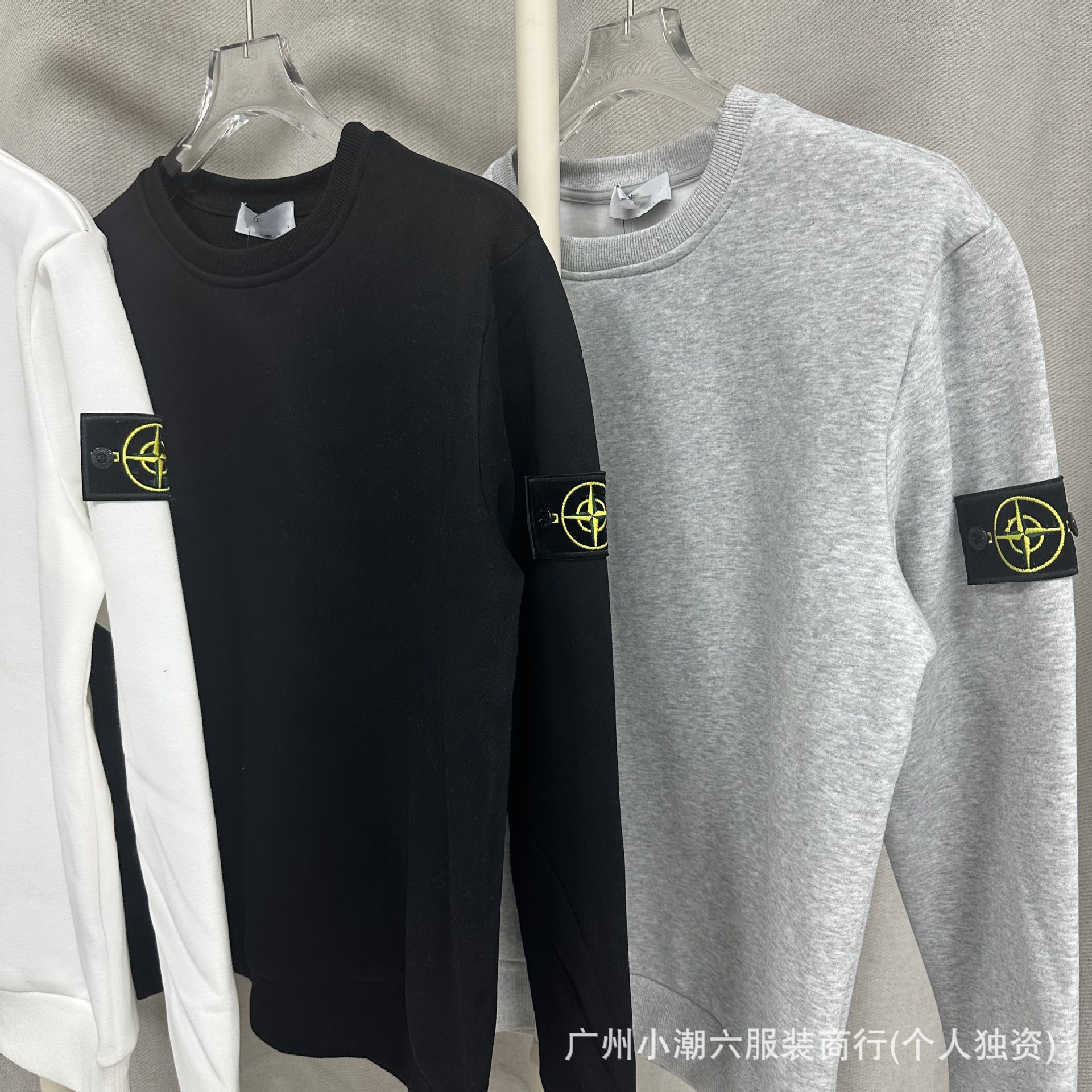 국경 간 스톤 스톤 단색 나침반 배지 기본 풀오버 기능 캐주얼 남성과 여성의 둥근 목 스웨터 섬스토어 가기