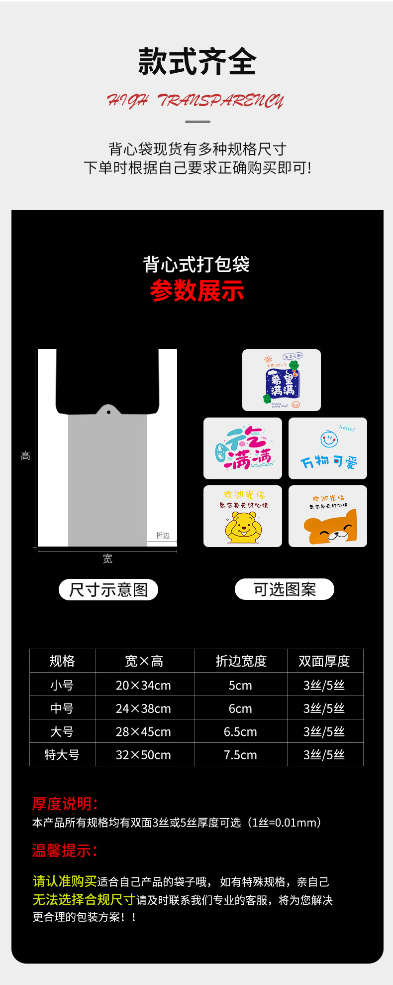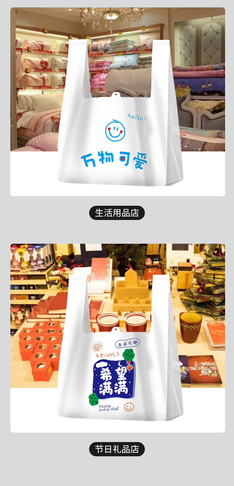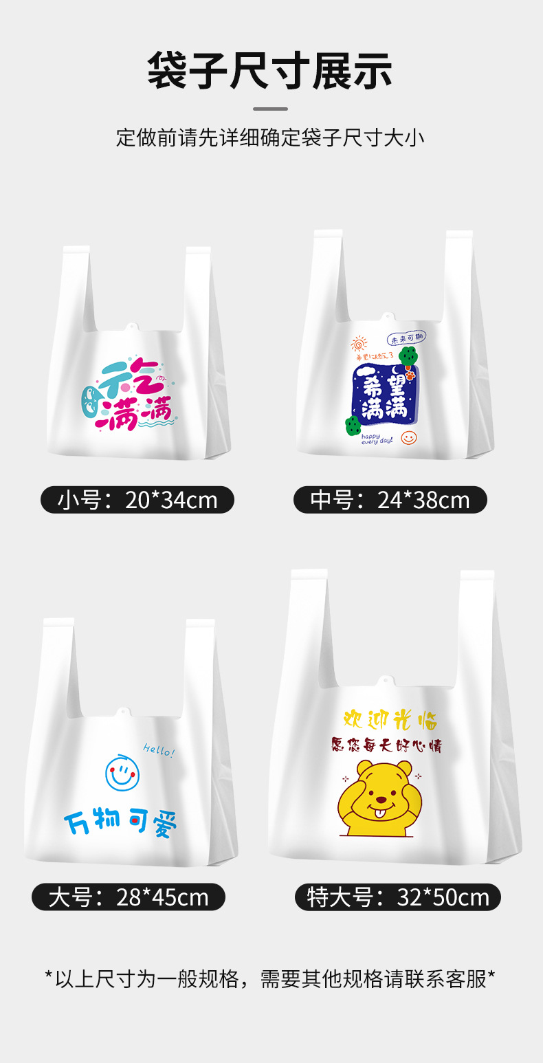 만화 귀여운 케이터링 플라스틱 테이크아웃 포장 조끼 편리한 핸드백 일회용 도매 두꺼운 대형스토어 가기
