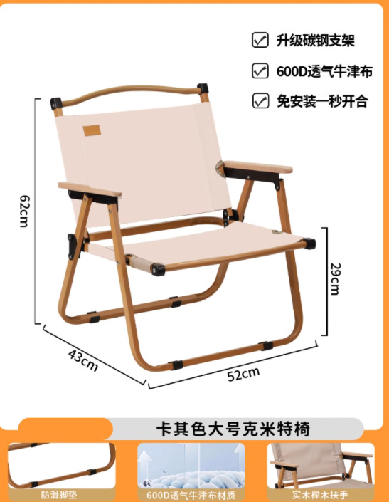 • [두꺼운 너도밤나무 팔걸이-미디엄 클래식] 카키색 강화 의자 프레임 + 안전 미끄럼 방지 매트