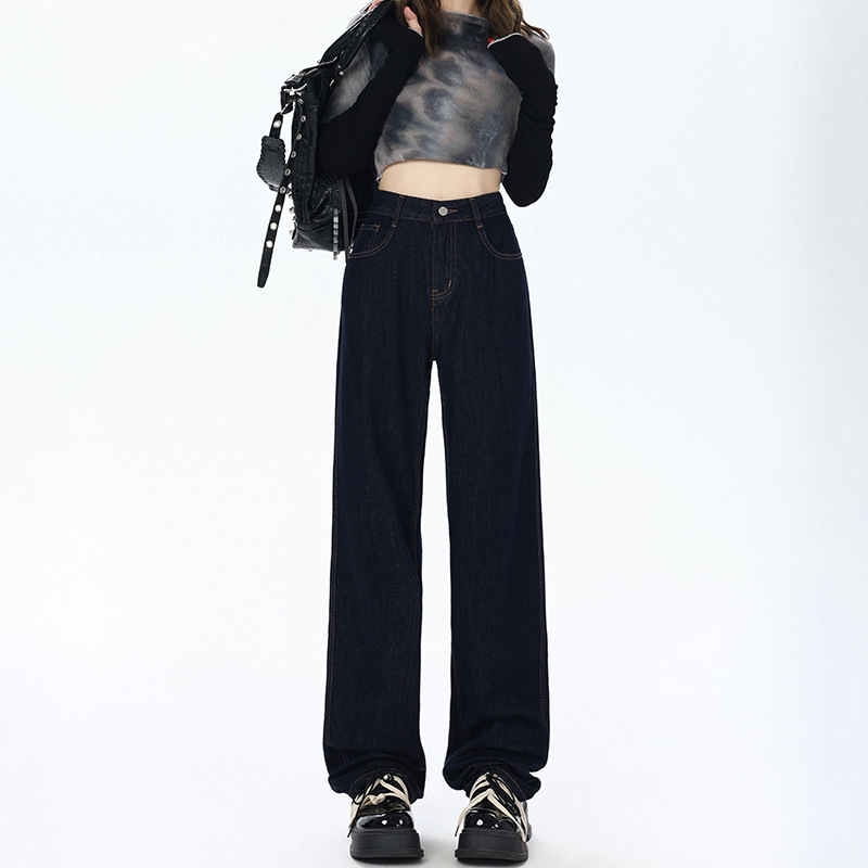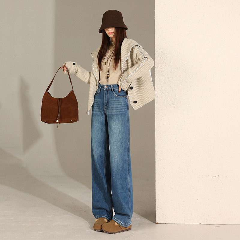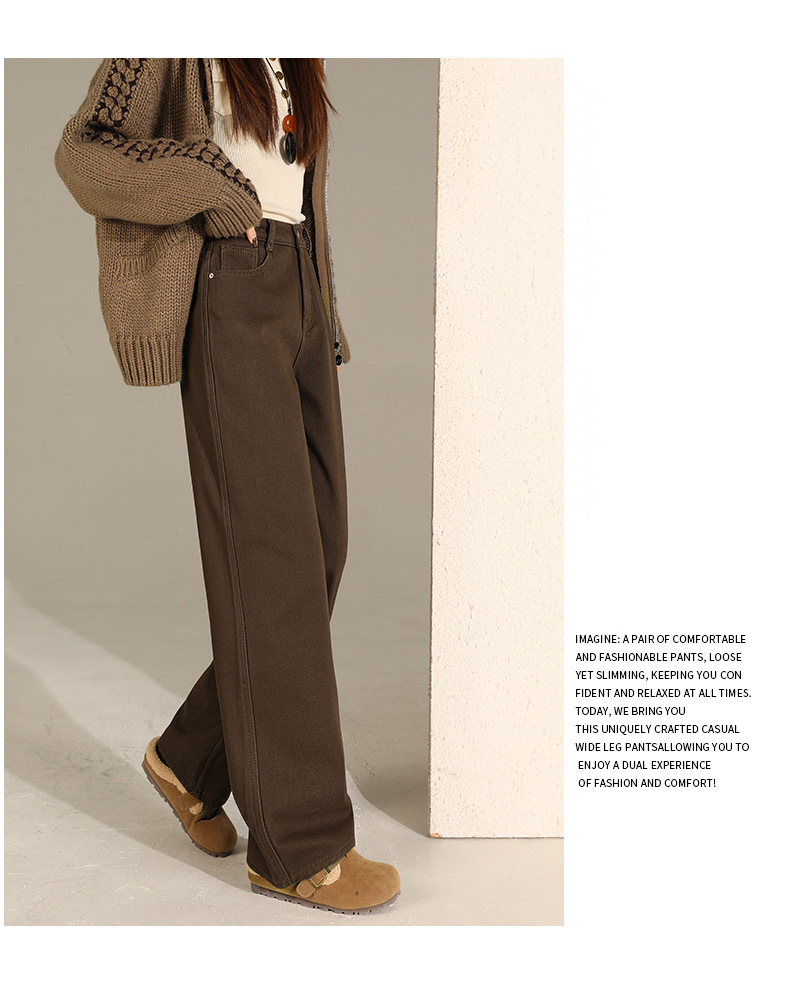 여성용 밝은 색상의 와이드 레그 청바지 2025 가을 겨울용 기모 안감 두꺼운 다용도 하이웨이스트 루즈핏 슬림 스트레이트 롱 팬츠