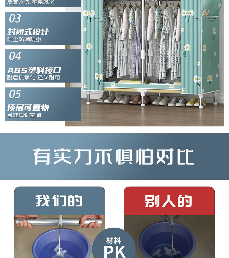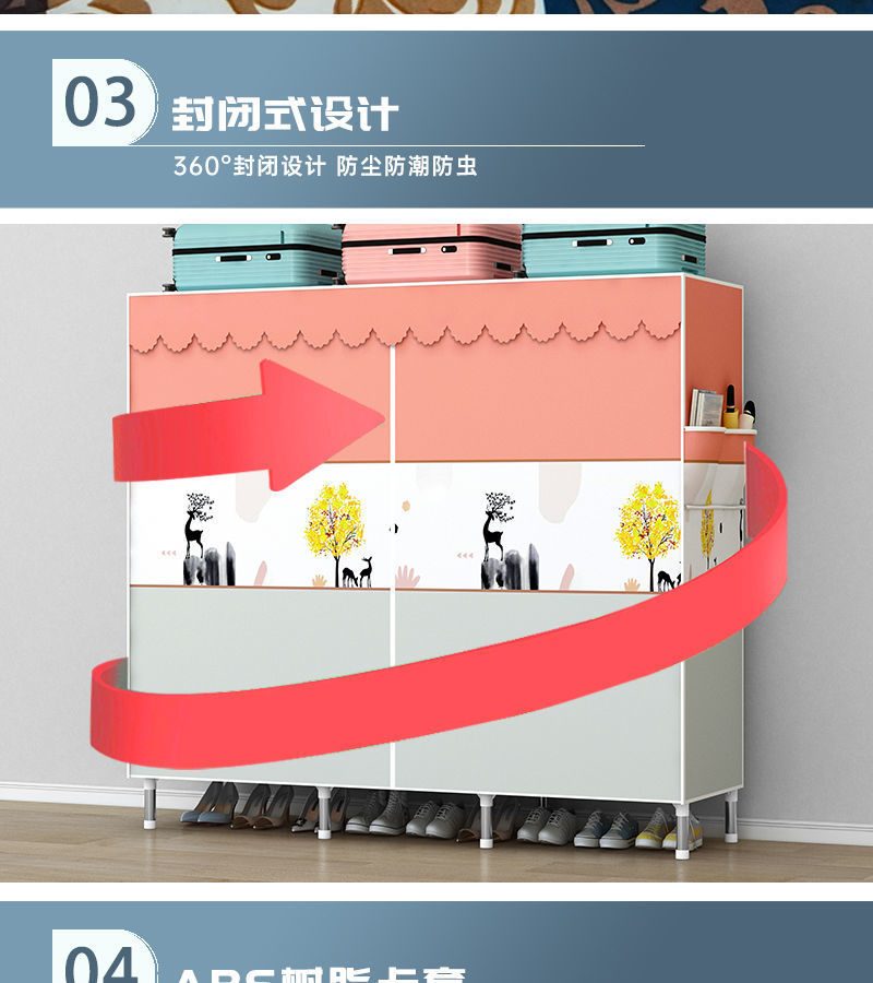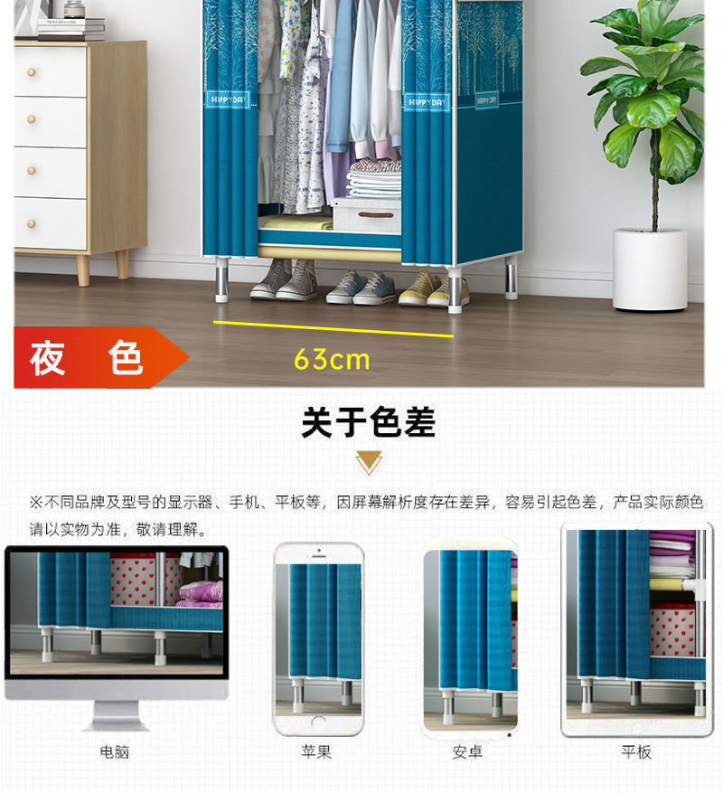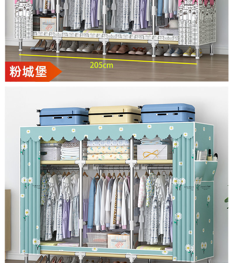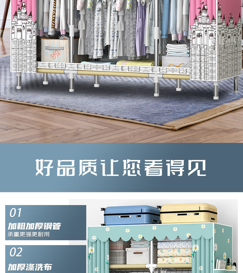새로운 천 옷장, 간단한 조립, 두껍고 강화된 임대 주택, 가정용 침실, 국경 간 공장 공급망스토어 가기