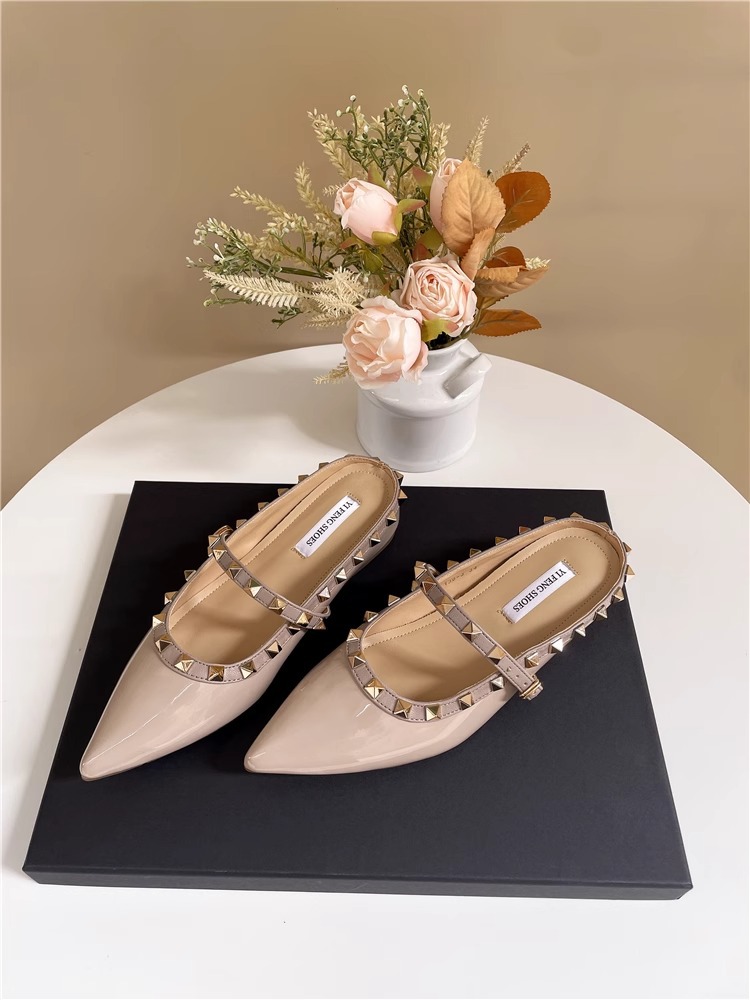 Mary Jane Baotou 샌들 작은 높이 올리는 프랑스 뾰족한 발가락 얕은 리벳 플랫 하프 톤 신발스토어 가기
