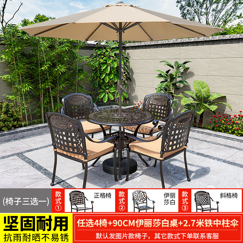 • 의자 4개 + 90CM 엘리자베스 테이블 + 철제 중앙 기둥 우산 2.7m개 선택 [우산 포함 테이블과 의자 1]