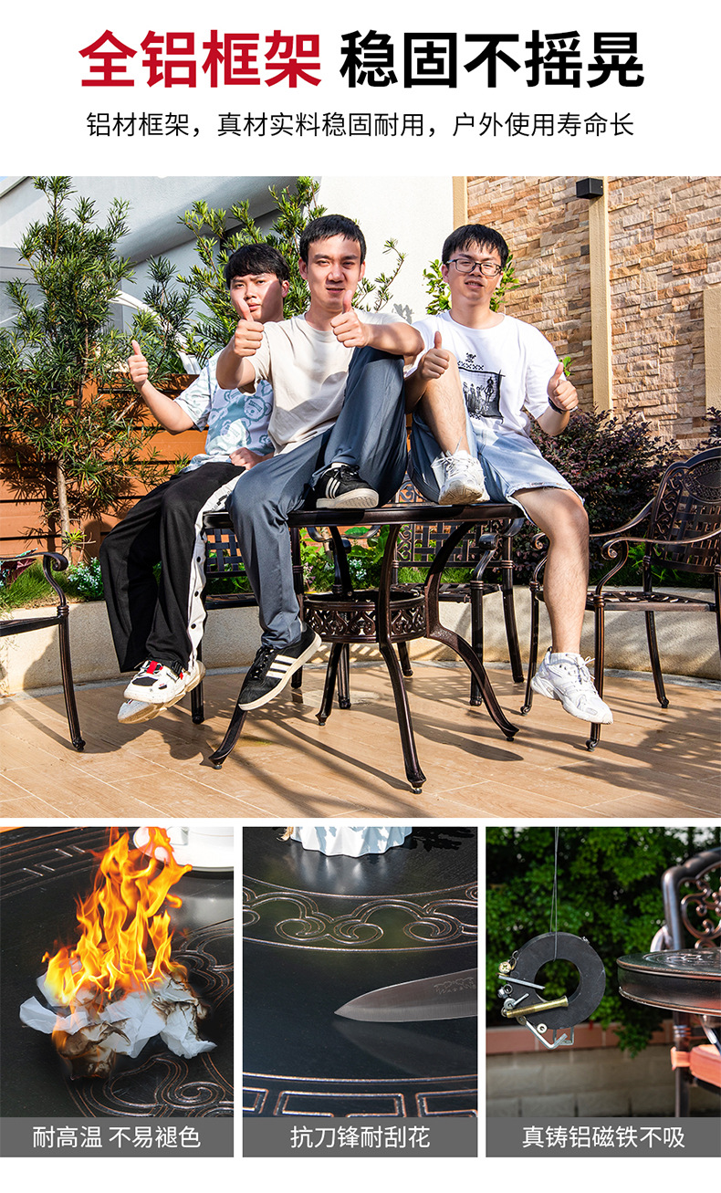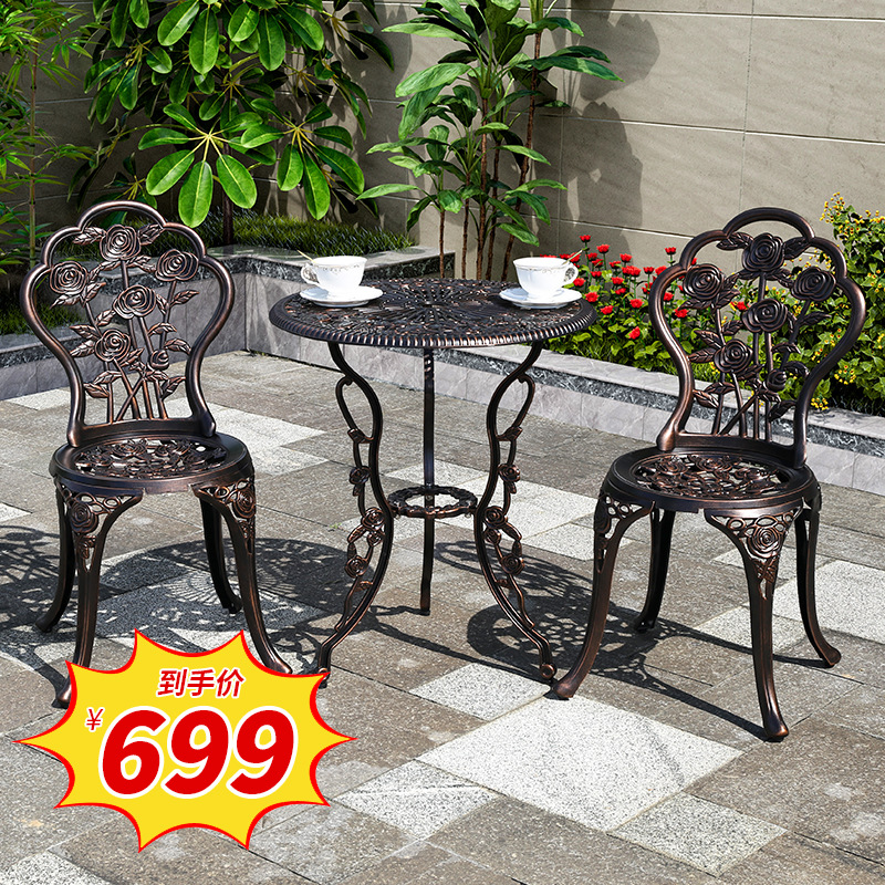 야외 테이블과 의자 안뜰 야외 발코니 레저 우유 차 레스토랑 홈스테이 인터넷 축하 캐스트 알루미늄 금속 테이블과 의자 조합