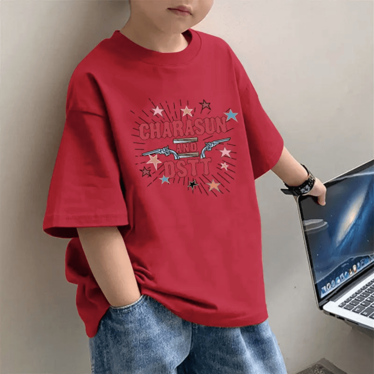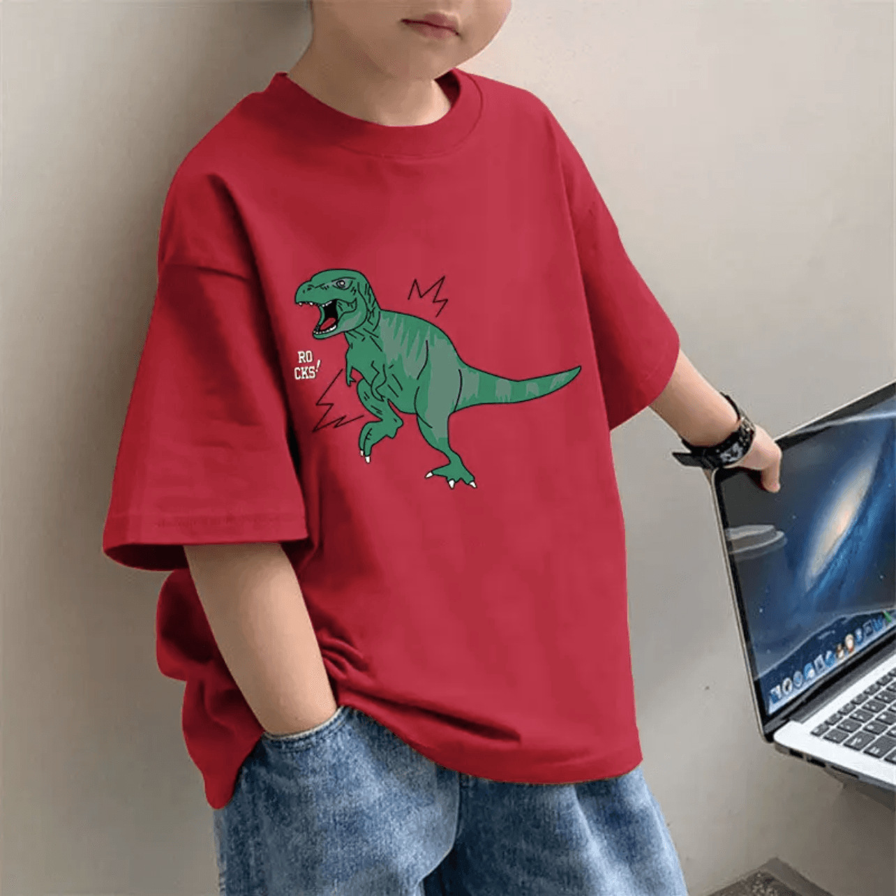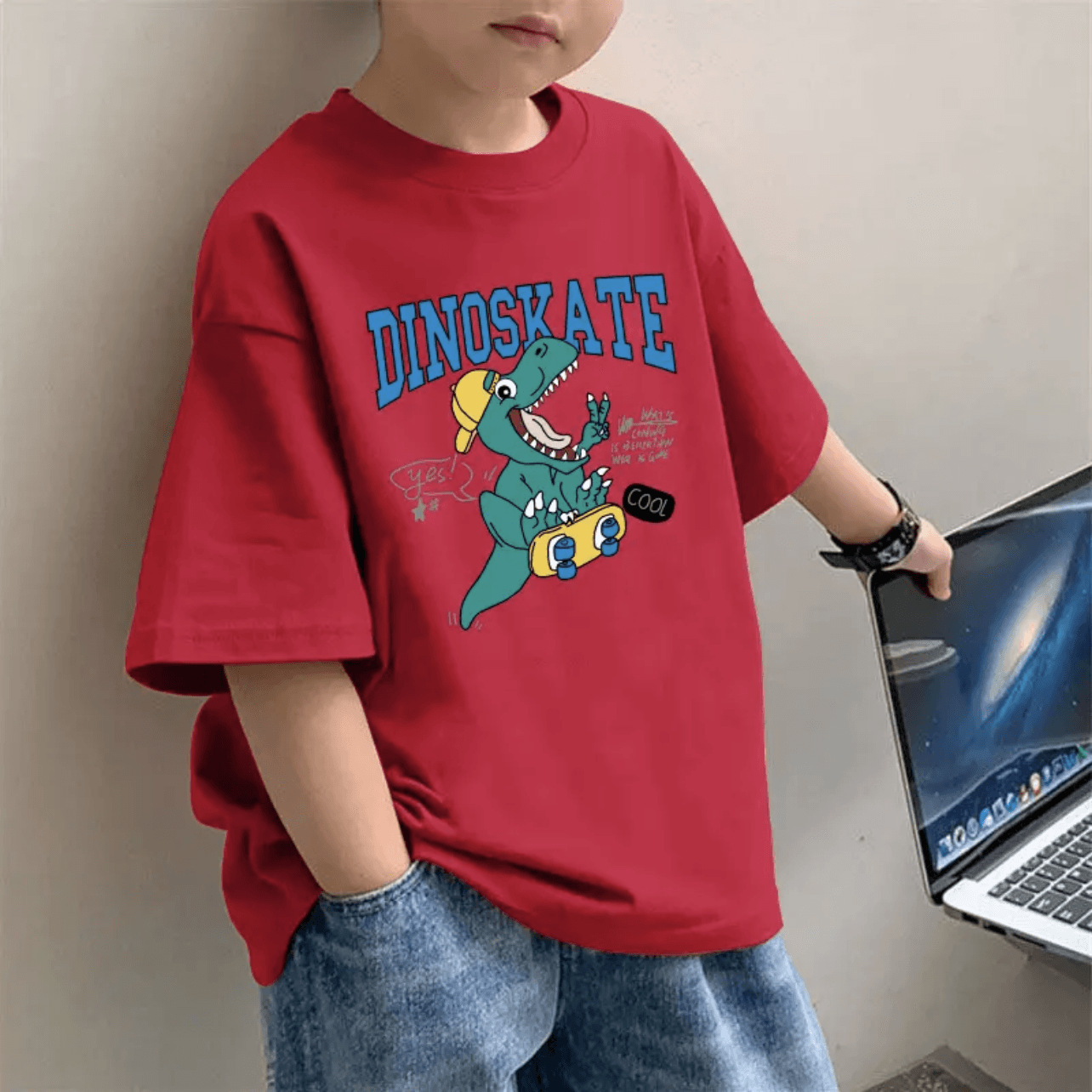 여름 새 한국 스타일 어린이 서양식 반팔베이스 셔츠 소년 순면 레드 반소매 올매치 중대형 어린이 티셔츠스토어 가기