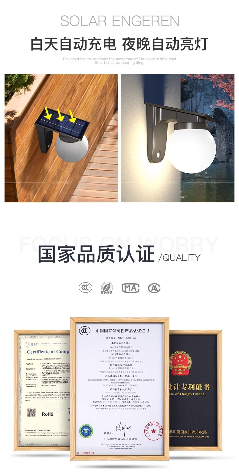 국경 간 태양 야외 벽 램프 구형 조명 램프 정원 안뜰 외벽 유도 램프 간단한 방수 복도 램프스토어 가기