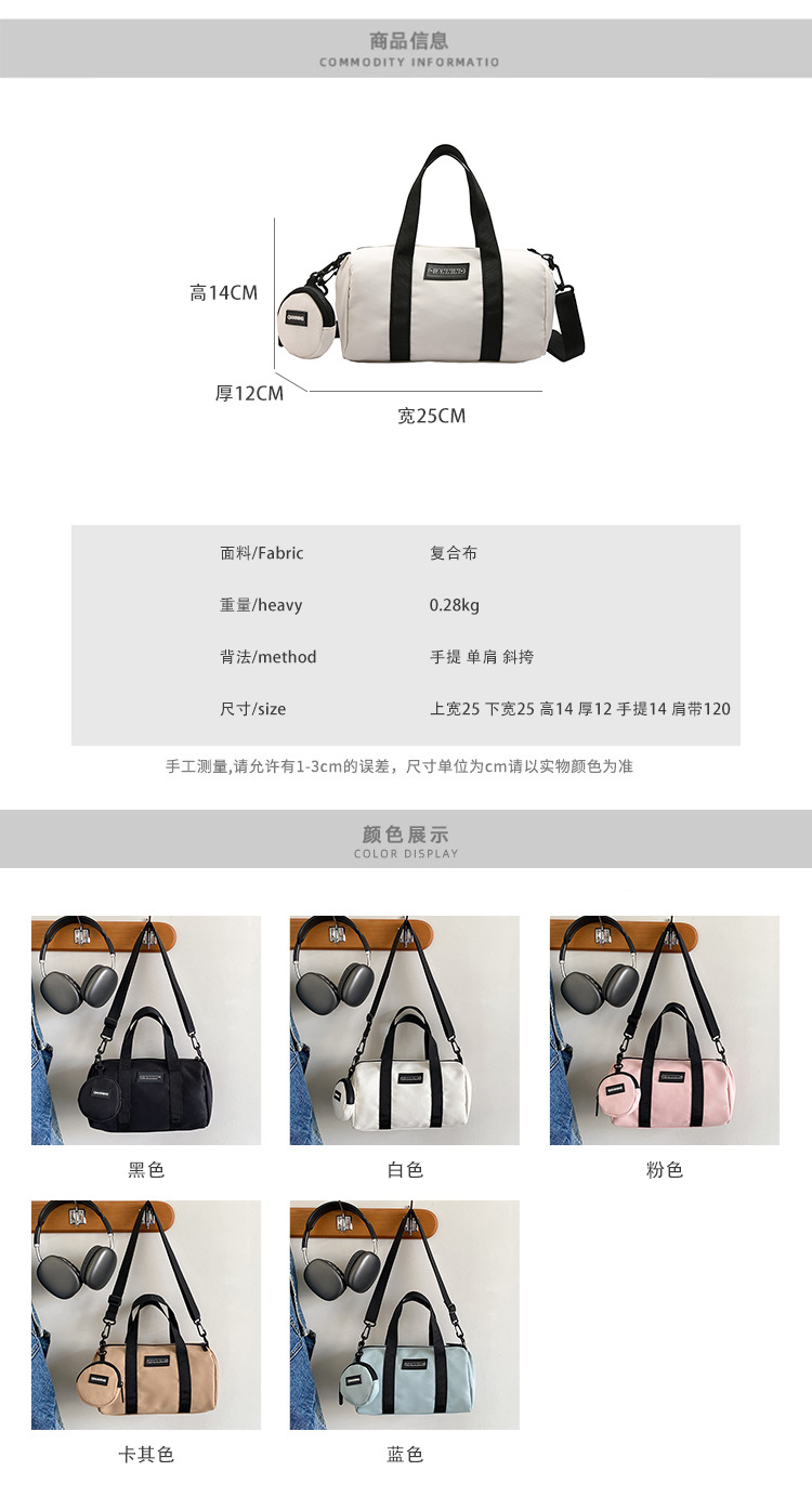한국어 버전 ins 다용도 나일론 보스턴백 여성 패션 통근 핸드 베개 가방 캐주얼 숄더 크로스바디 소형 가방스토어 가기