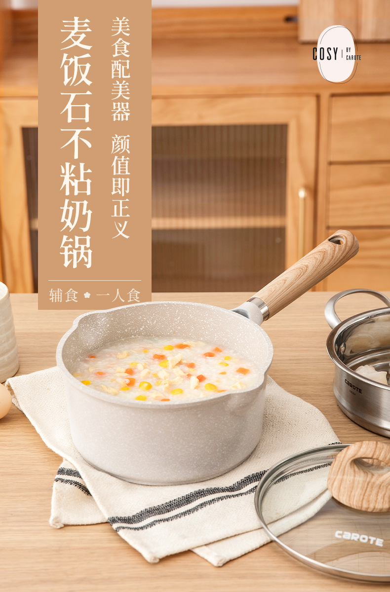 メディ칼 스톤 소형 우유 냄비, 이유식 보충 냄비, 아기 튀김 및 요리 올인원 냄비, 붙지 않는 냄비, 가정용 수프 인스턴트 국수 냄비스토어 가기