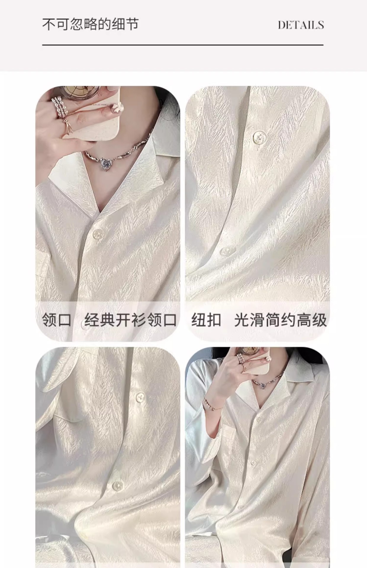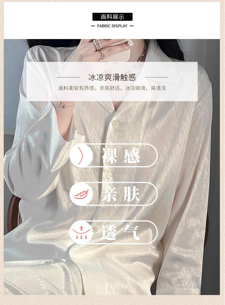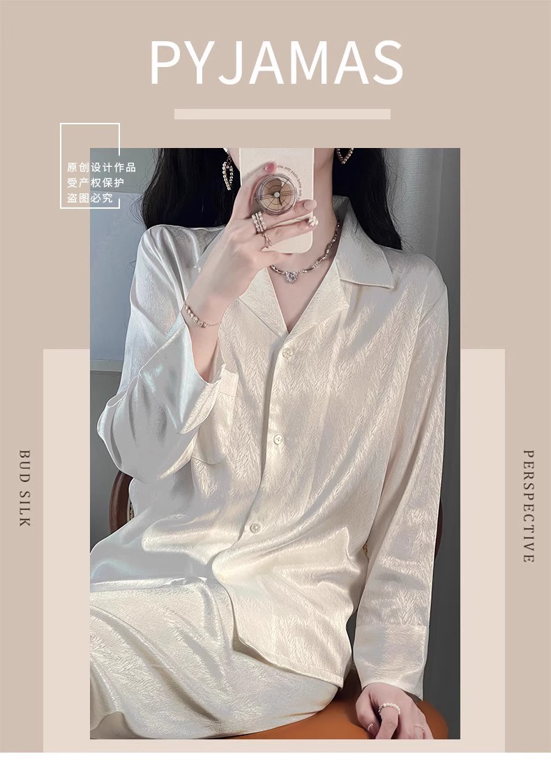 새로운 품질 셔츠 잠옷 여성의 봄과 가을 흰색 긴 소매 바지 자카드 카디건 홈 옷 실크 아이스 실크 세트스토어 가기