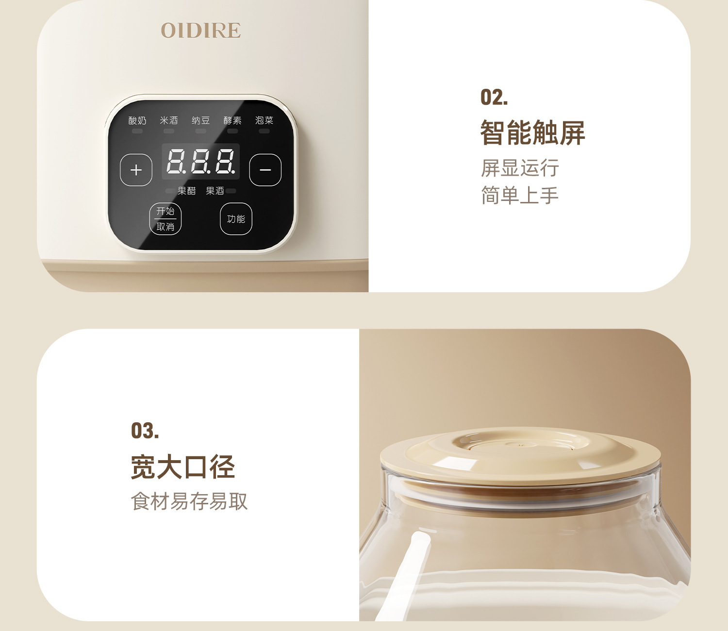 OIDIRE 요구르트 기계 요리 기계 가정용 작은 자동 다기능 수제 낫토 쌀 와인 일정한 온도 큰 용량