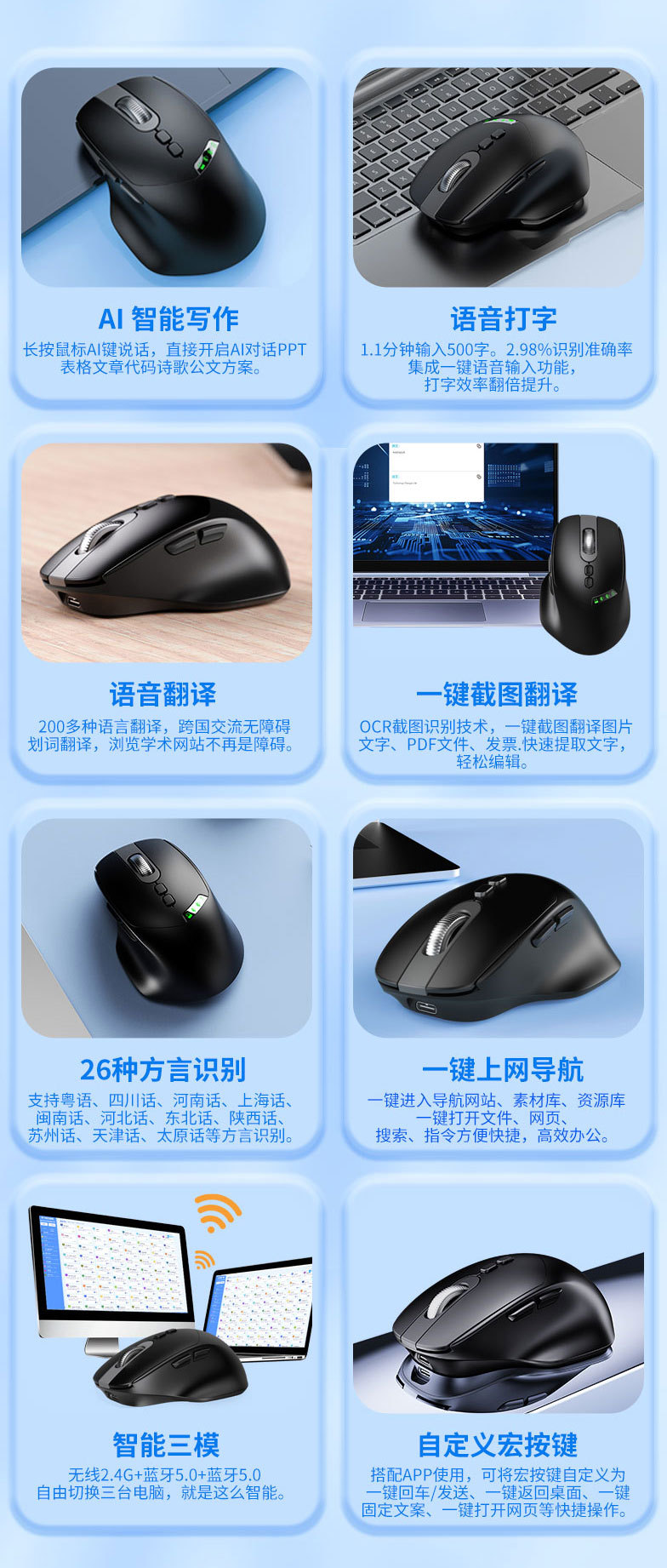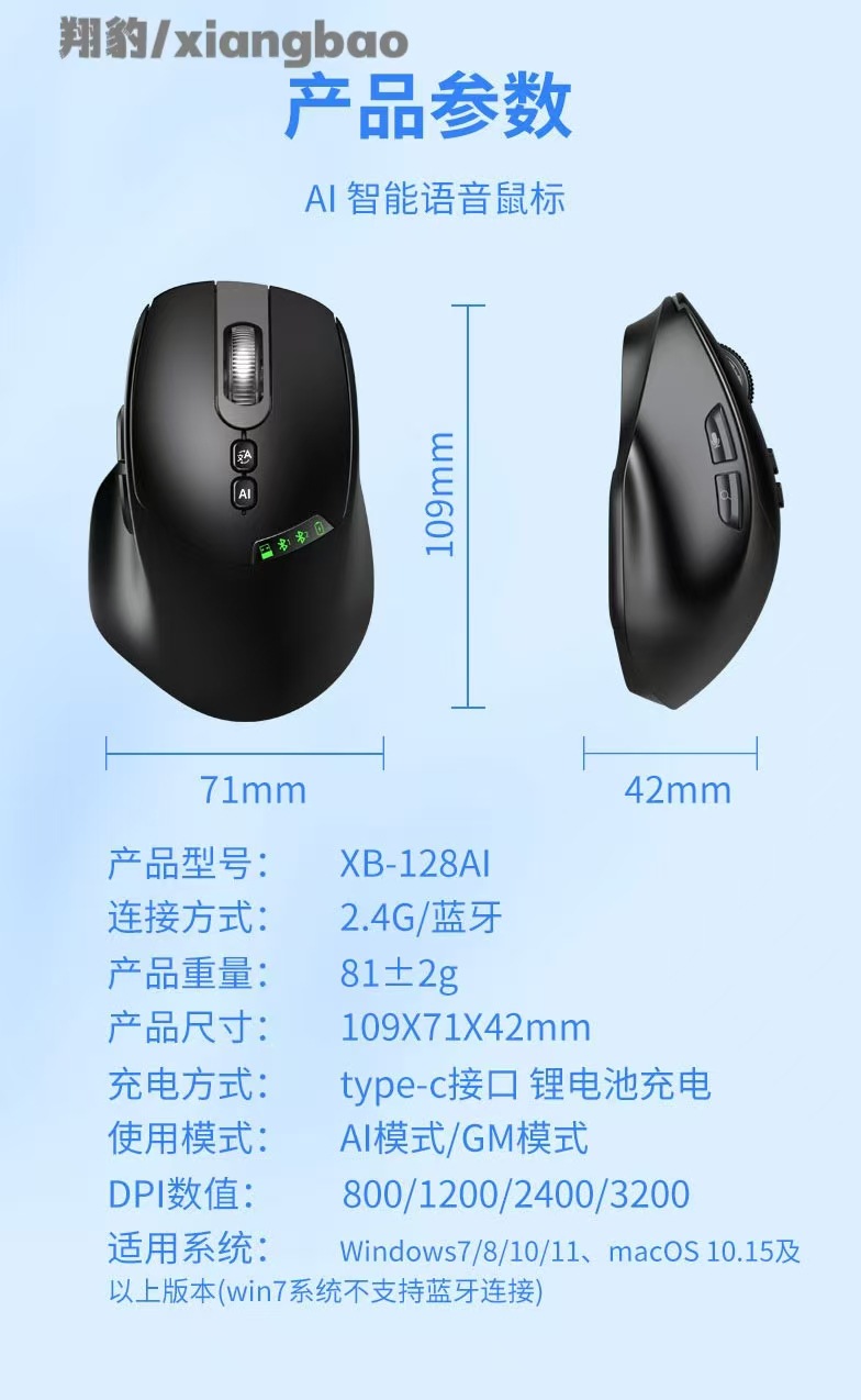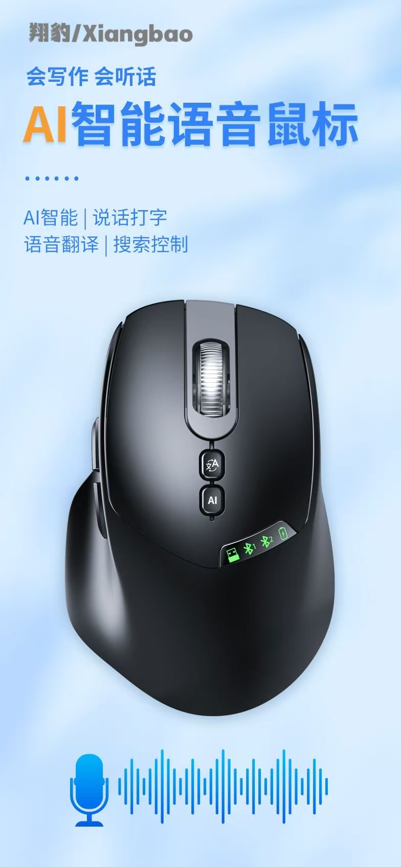 Xiangbao 새로운 AI 스마트 무선 마우스 블루투스 음성 제어 번역 타이핑 충전 게임 사무실 컴퓨터스토어 가기
