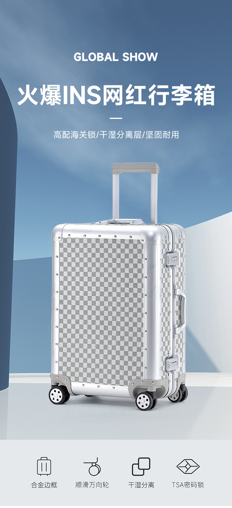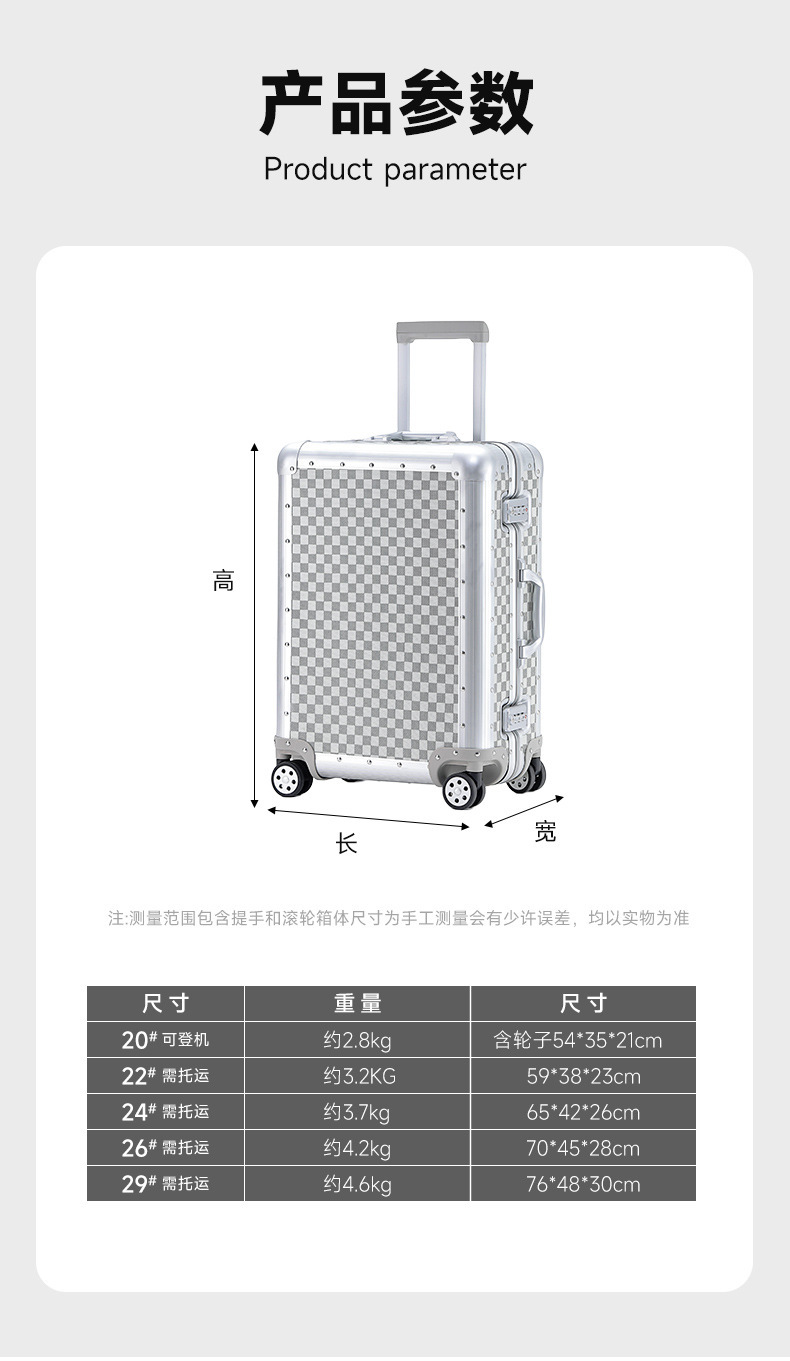 하이 엔드 비즈니스 모든 알루미늄 마그네슘 합금 풀로드 수하물 여성 20 인치 탑승 24 가방 남성 조용한 유니버설 휠 조수스토어 가기