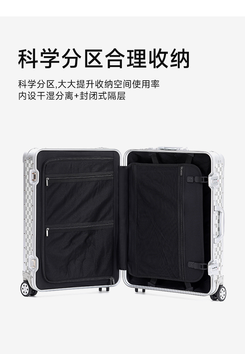 하이 엔드 비즈니스 모든 알루미늄 마그네슘 합금 풀로드 수하물 여성 20 인치 탑승 24 가방 남성 조용한 유니버설 휠 조수