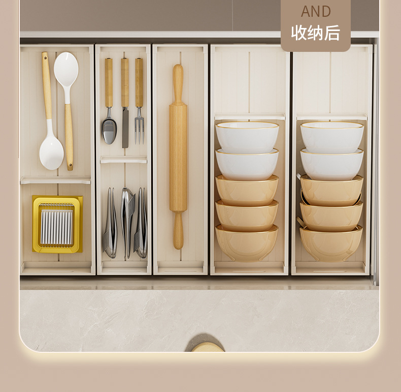 주방 서랍 수납 칸막이 내장 캐비닛 접시 수납 선반 식기 접시 수납 상자 식기 선반