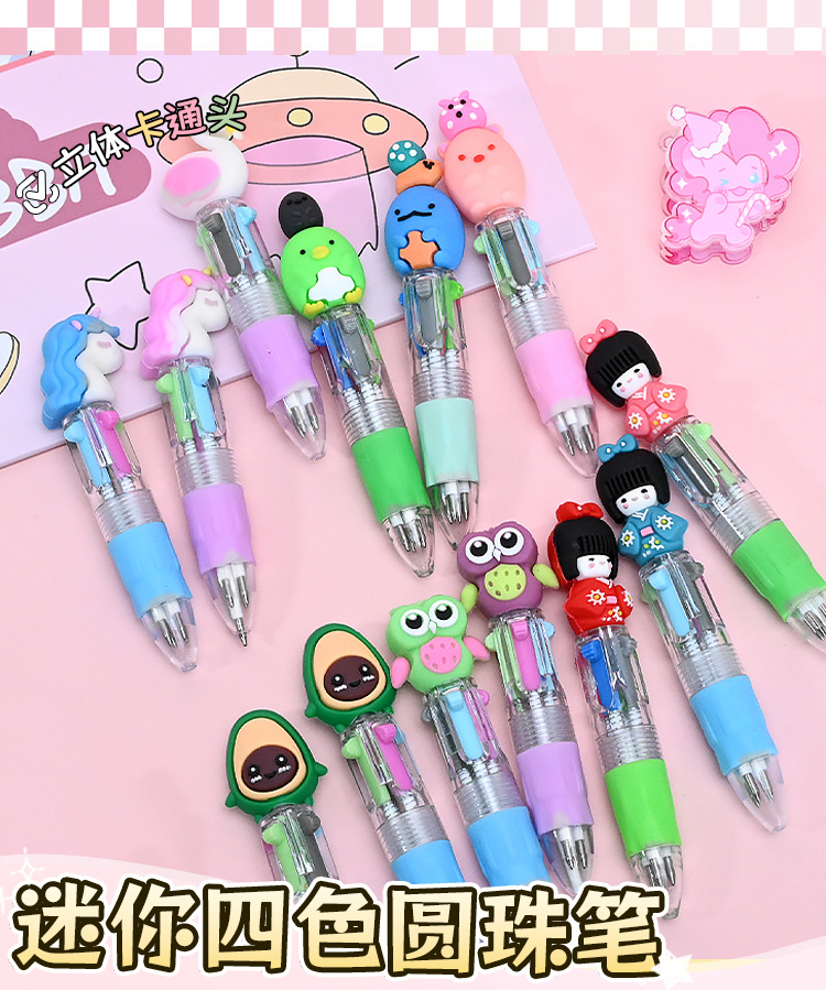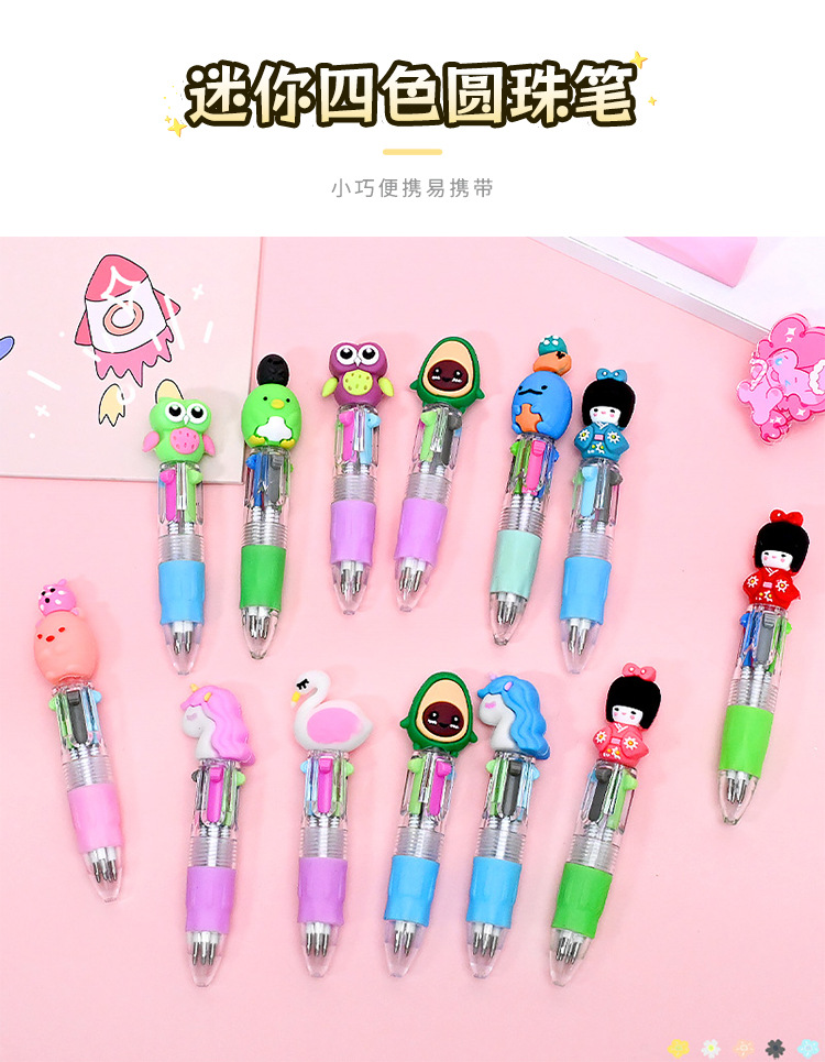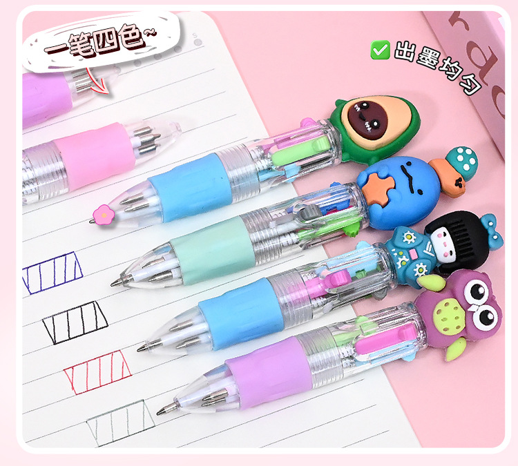이우 문구 4색 볼펜, 귀엽고 창의적인 멀티 컬러 일체형 학생 메모용 특수 푸시형 컬러펜스토어 가기