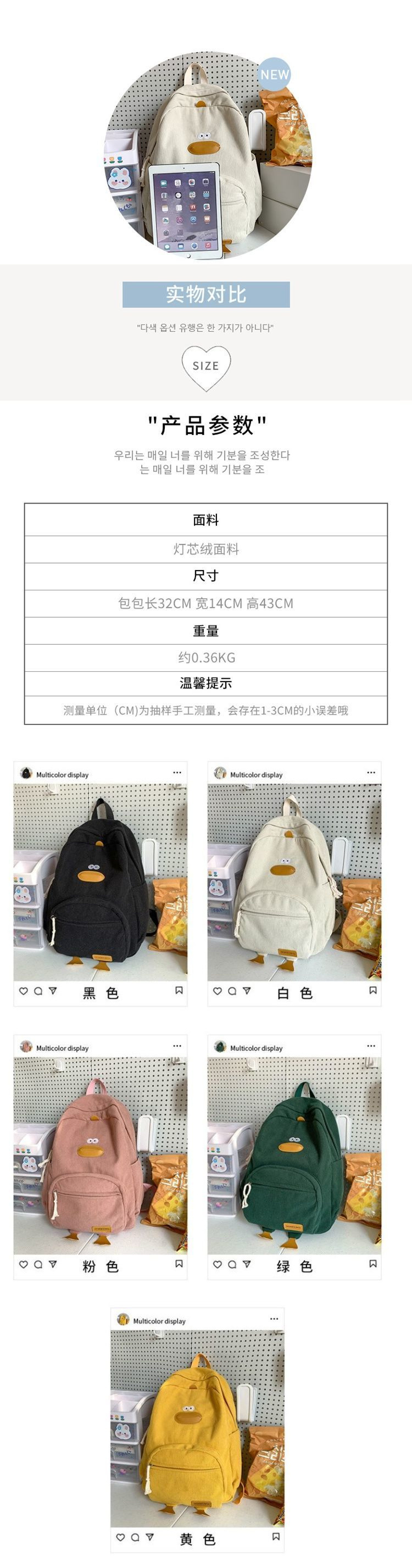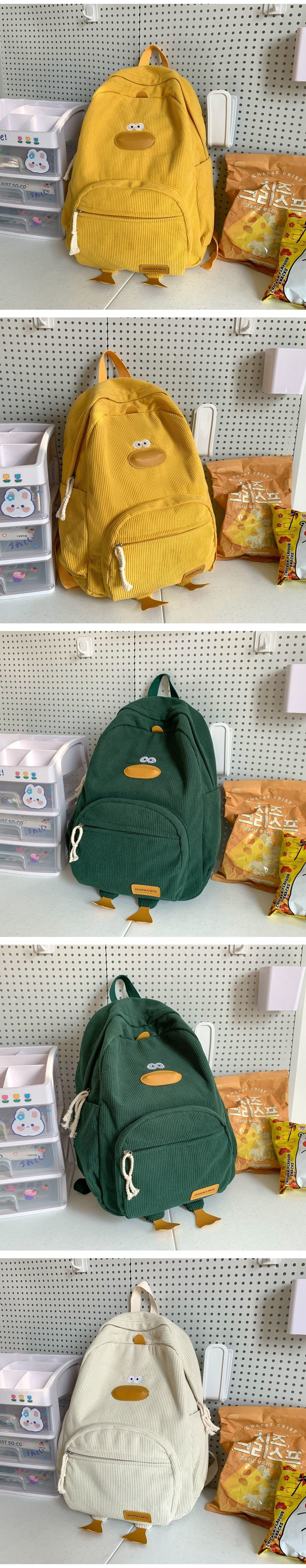 일본 스타일 귀여운 병아리 학교 가방 여고생 코듀로이 학교 가방 대학생을위한 캐주얼 캠퍼스 배낭스토어 가기