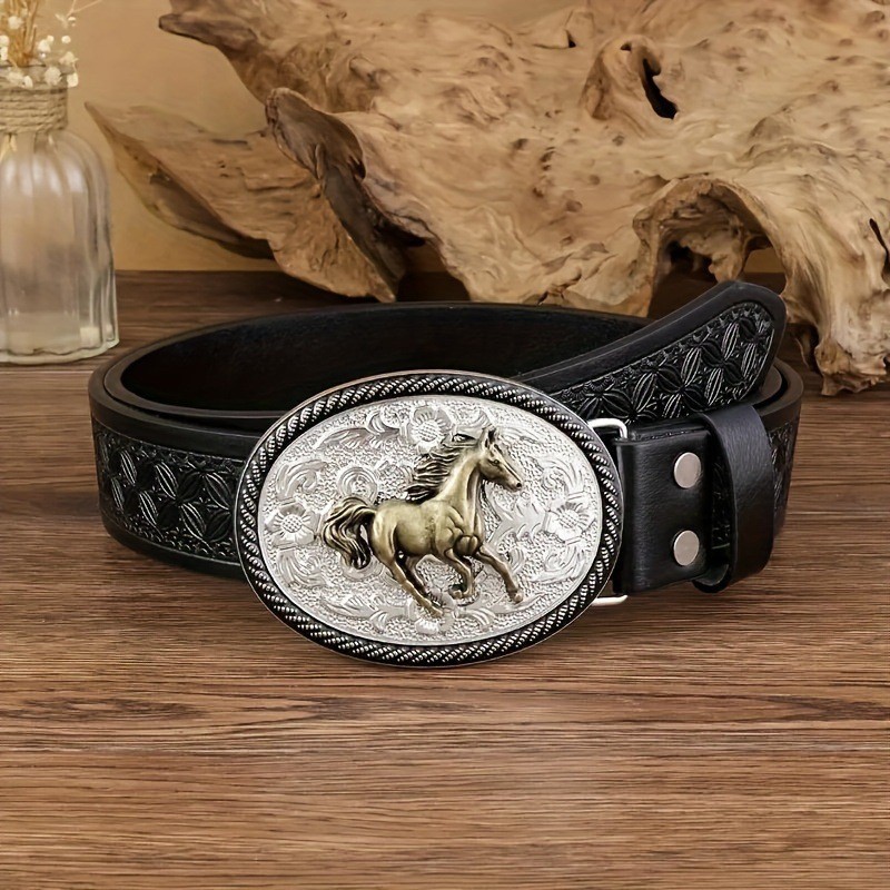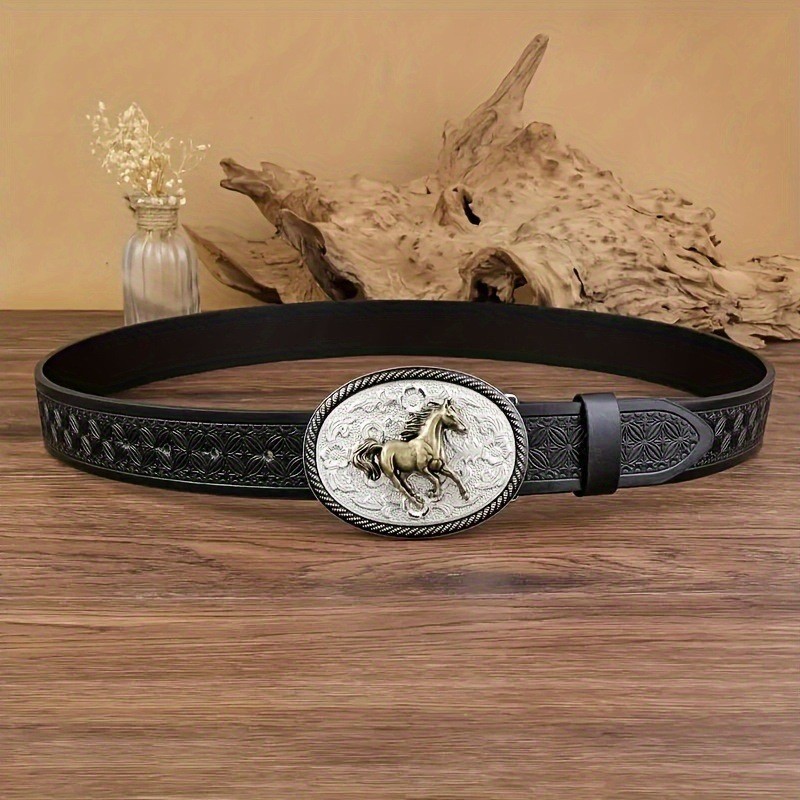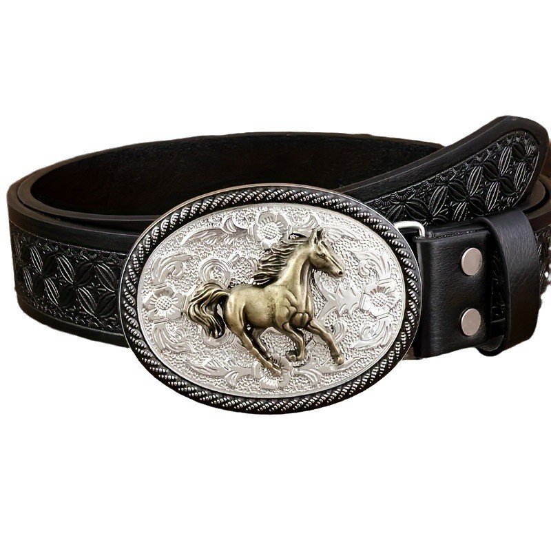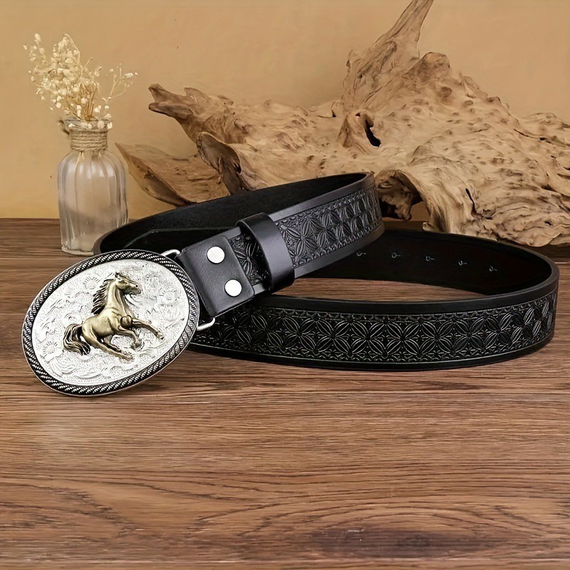 레트로 에스닉 스타일 말 몸 버클 양각 벨트, 남성과 여성을 위한 다재다능하고 멋진 트렌디한 벨트, 같은 스타일의 심플한 벨트