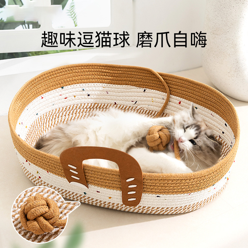 귀여운 알칼리성 물 빵 밧줄 고양이 둥지 봄과 여름 통기성 고양이 잠자는 고양이 침대 열린 애완 동물 고양이 둥지 어린 고양이를위한 둥지
