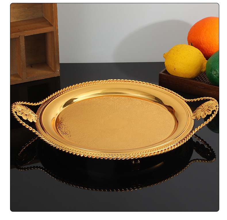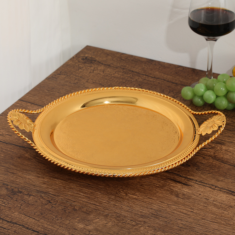유럽의 고급 황금 둥근 베이스 트레이 거실 과일 과자 보관 과일 트레이 휴대용 트레이 제조 업체 도매