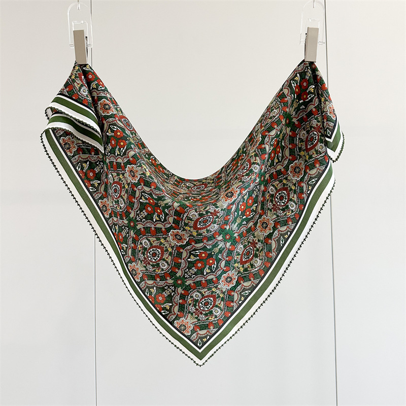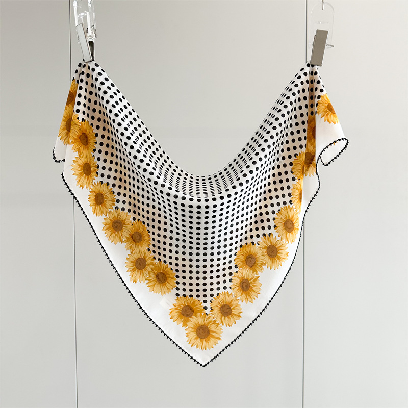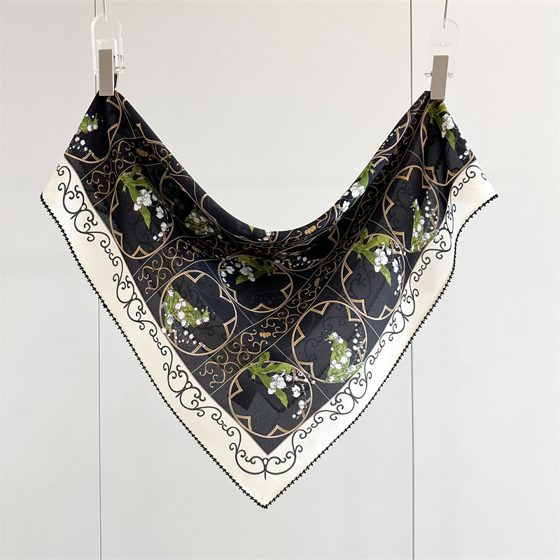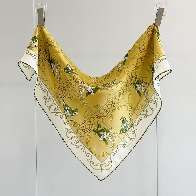 100% 뽕나무 실크 질감 올드 머니 스타일 실크 크레페 드 친 스카프 여성의 봄과 여름 유행 다양한 빈티지 스카프스토어 가기