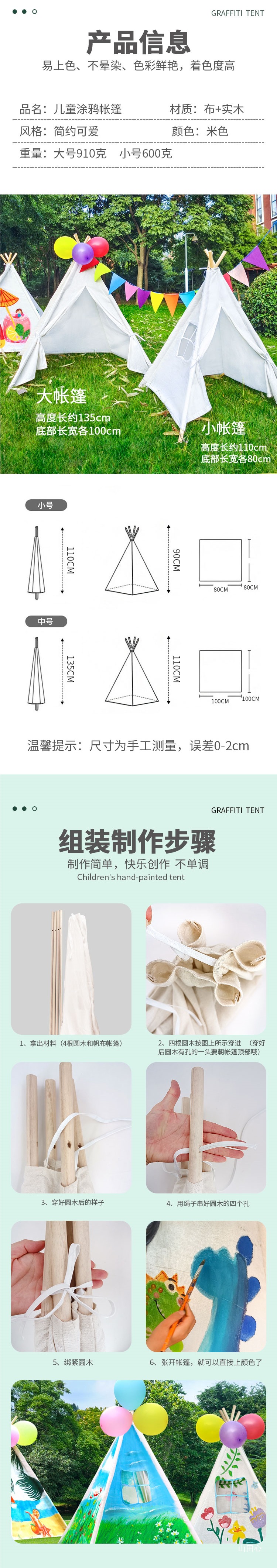 어린이 손으로 그린 텐트 그림 DIY 낙서 수제 야외 활동 삼각형 작은 텐트 아기 공주 게임 하우스스토어 가기