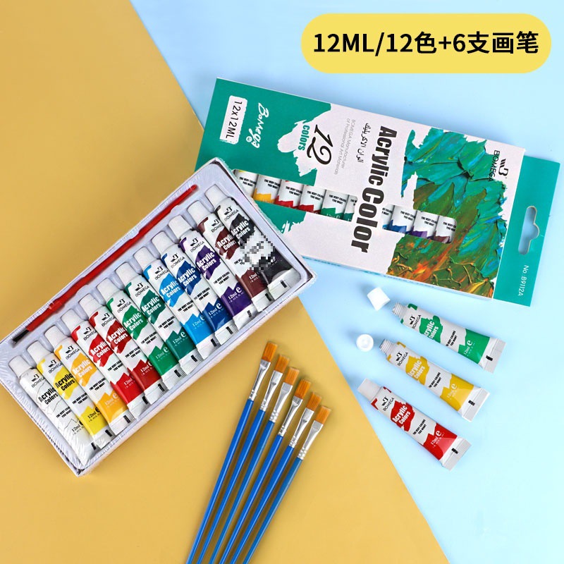• 12가지 색상의 아크릴 물감 + 브러쉬 6개