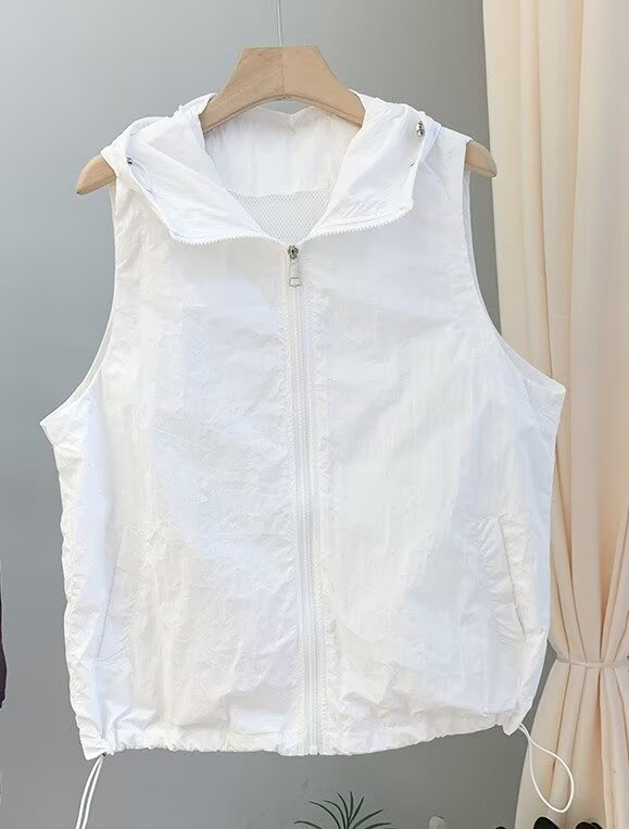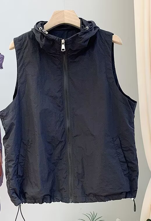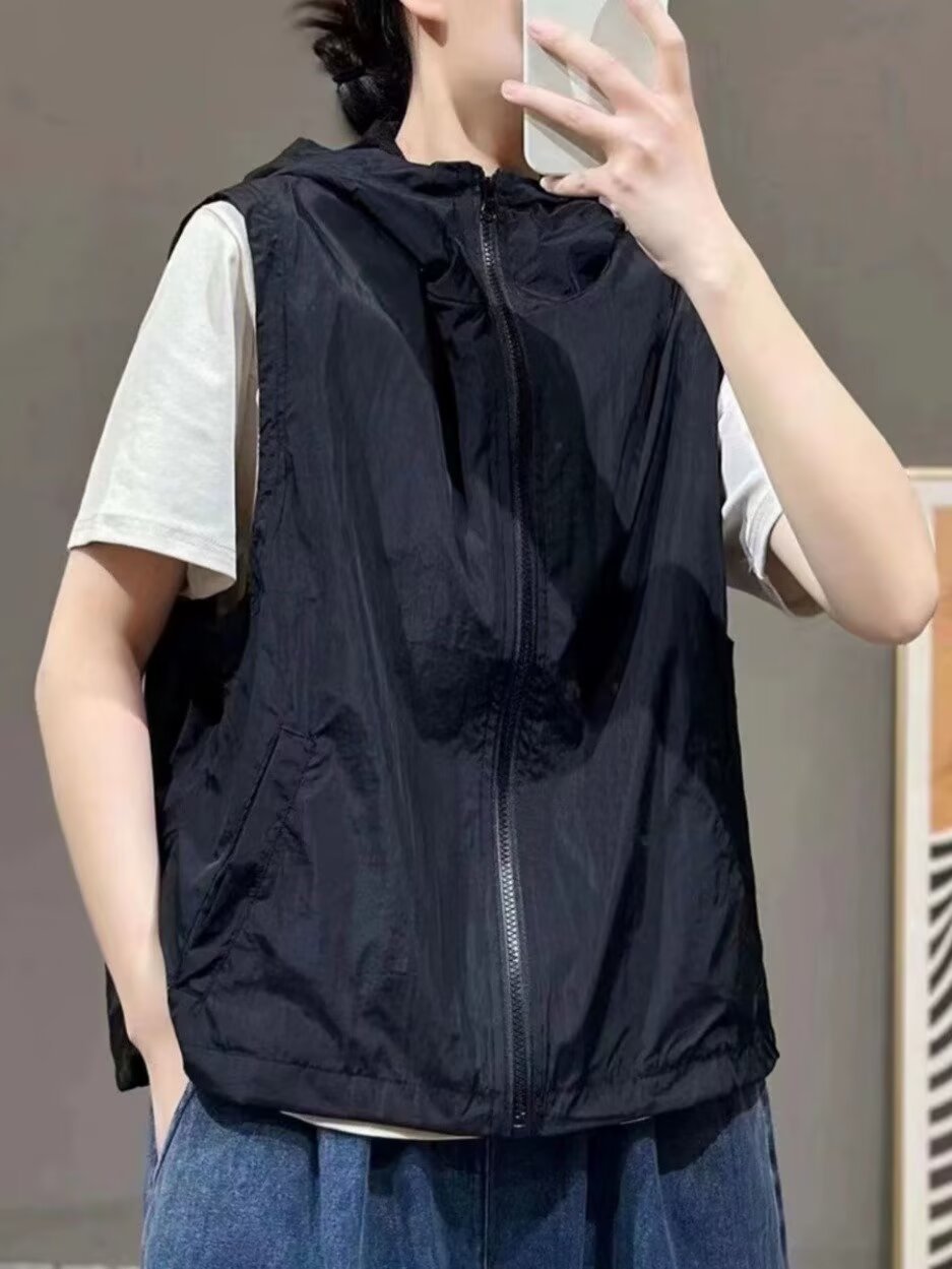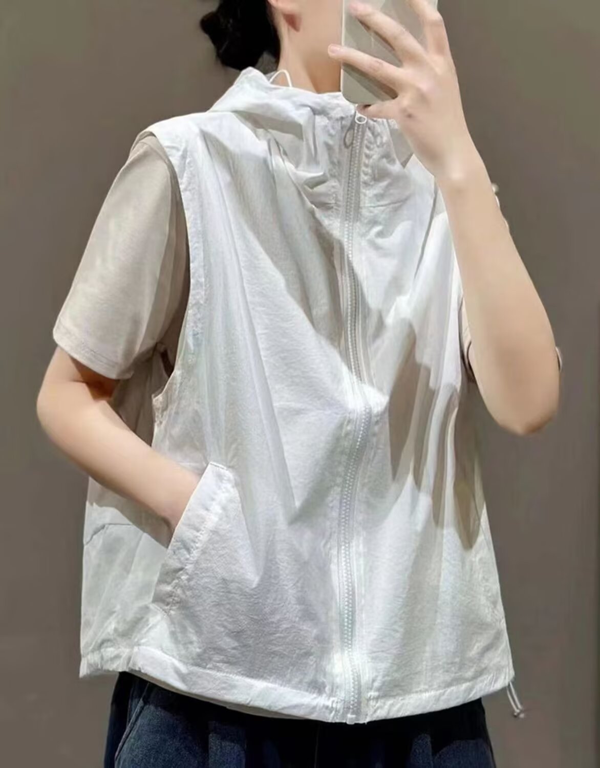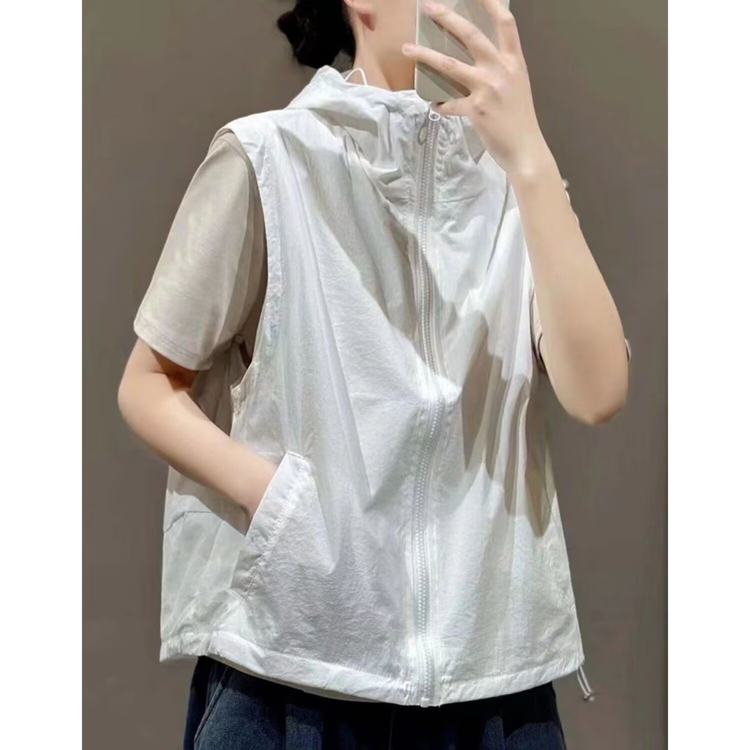 여성을위한 캐주얼 후드 민소매 스웨트 조끼 새로운 2025 여름 경량 태양 보호 재킷 서양식 다목적 조끼