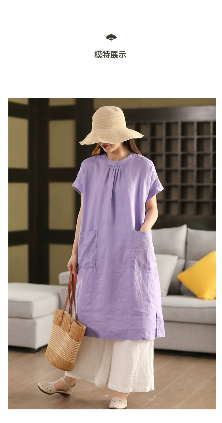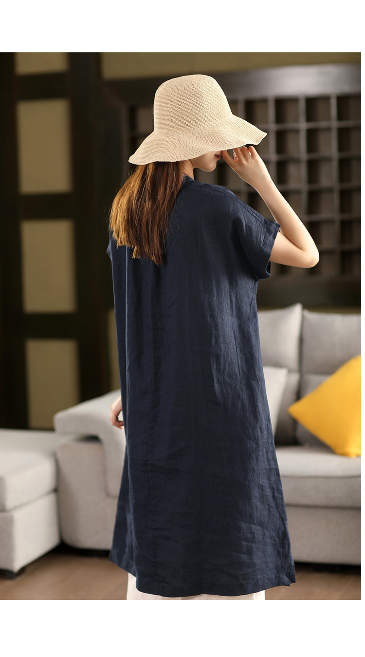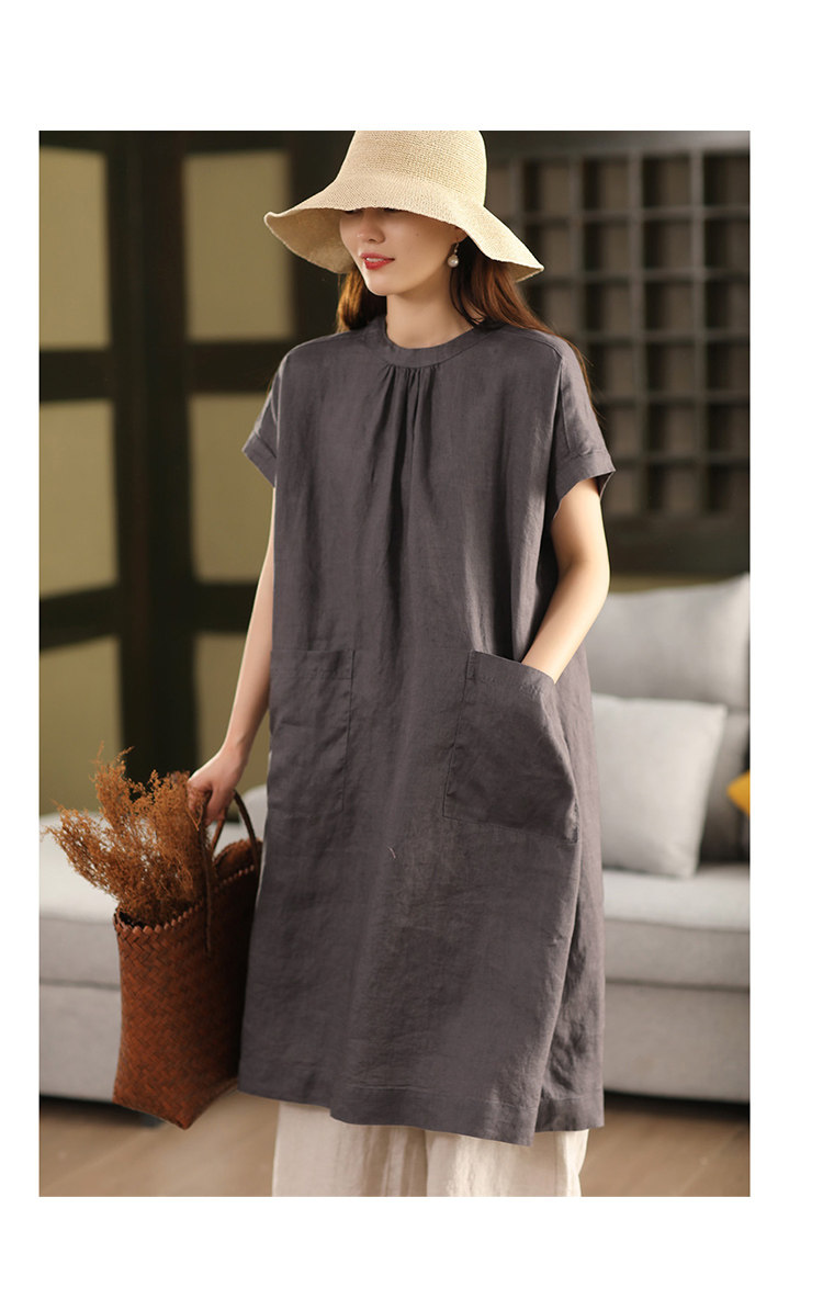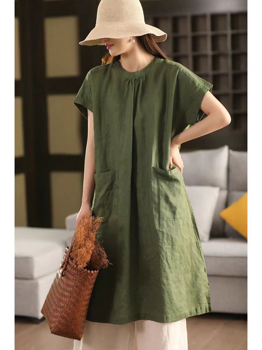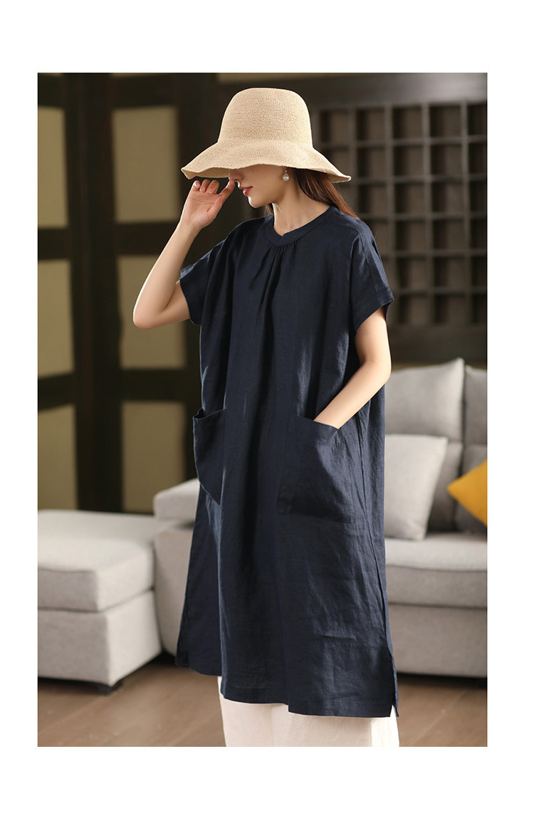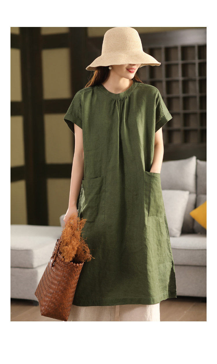 2025 여름 새로운 빈티지 리넨 원피스 여성의 우아한 중간 길이 슬리밍 느슨한 원피스 예술적 리넨 원피스스토어 가기