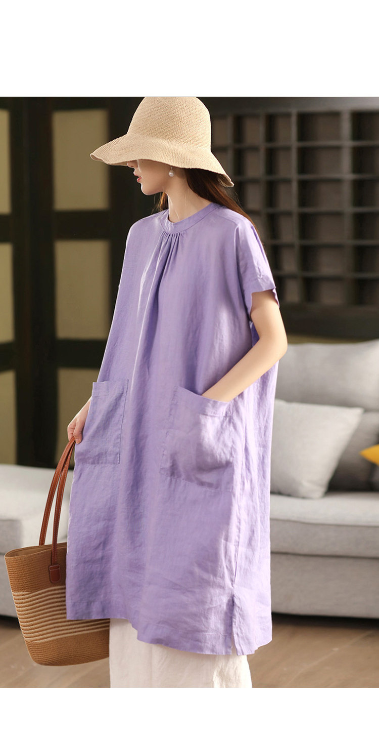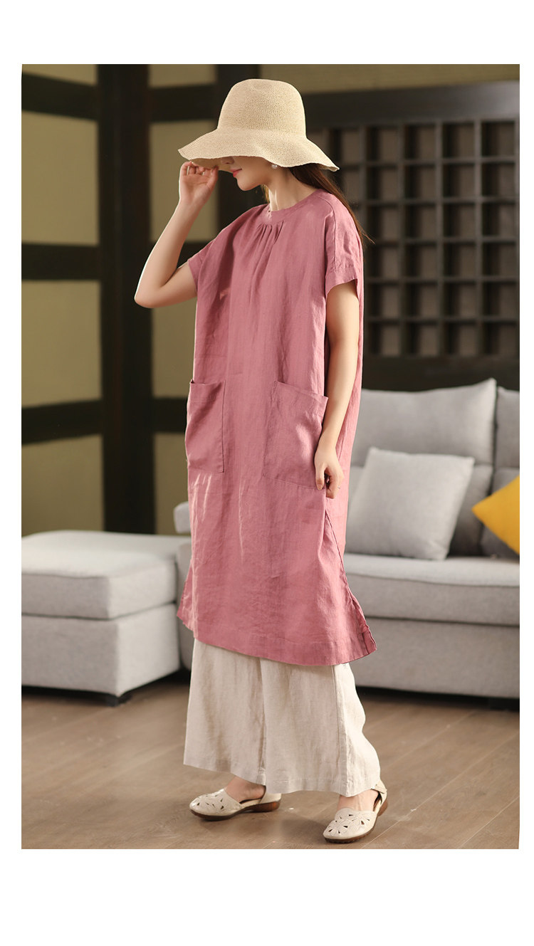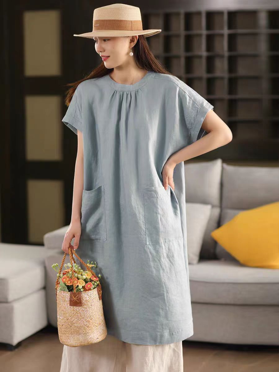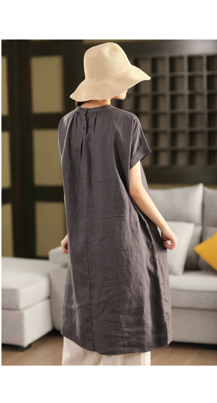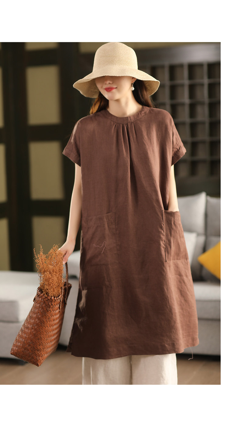2025 여름 새로운 빈티지 리넨 원피스 여성의 우아한 중간 길이 슬리밍 느슨한 원피스 예술적 리넨 원피스스토어 가기