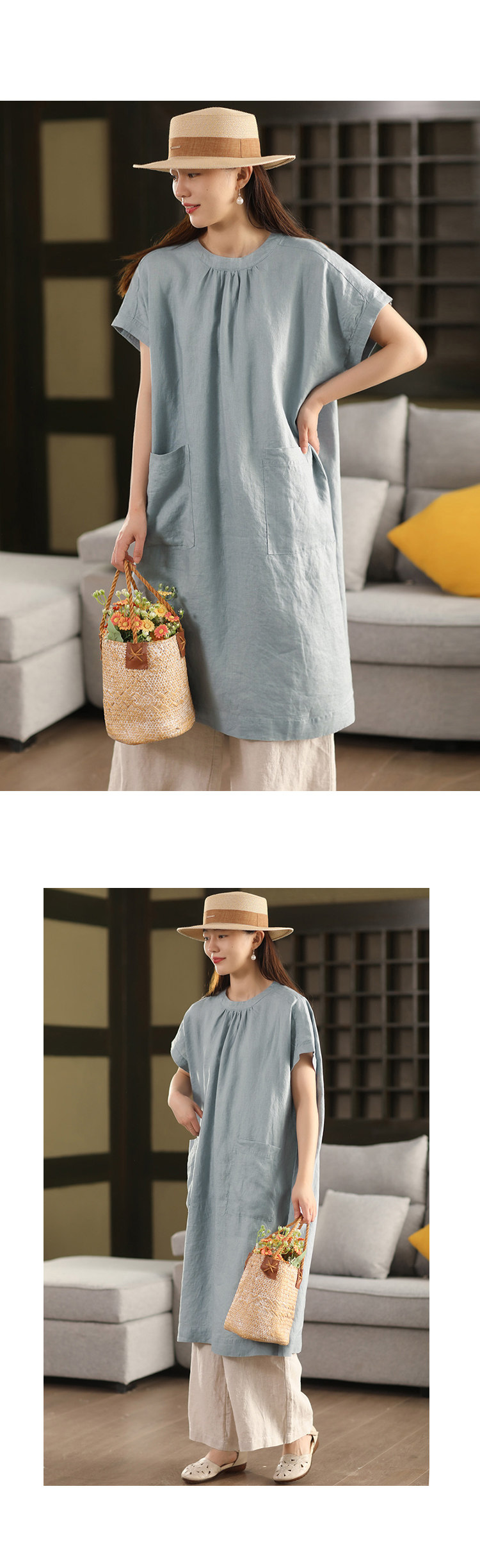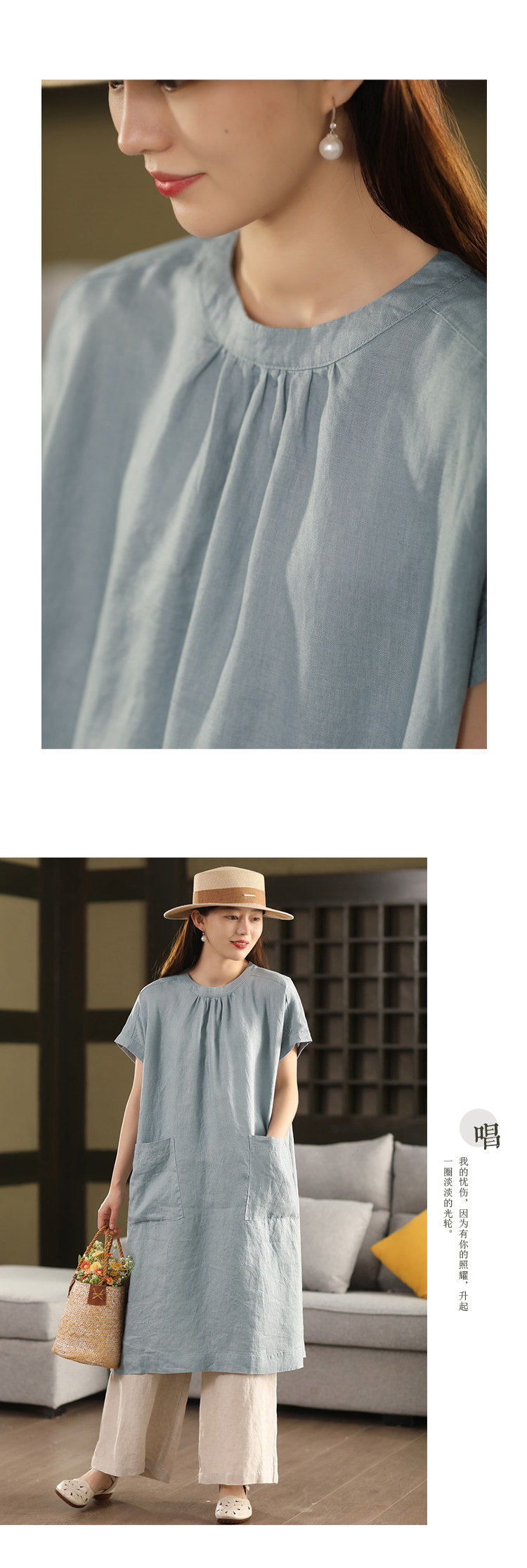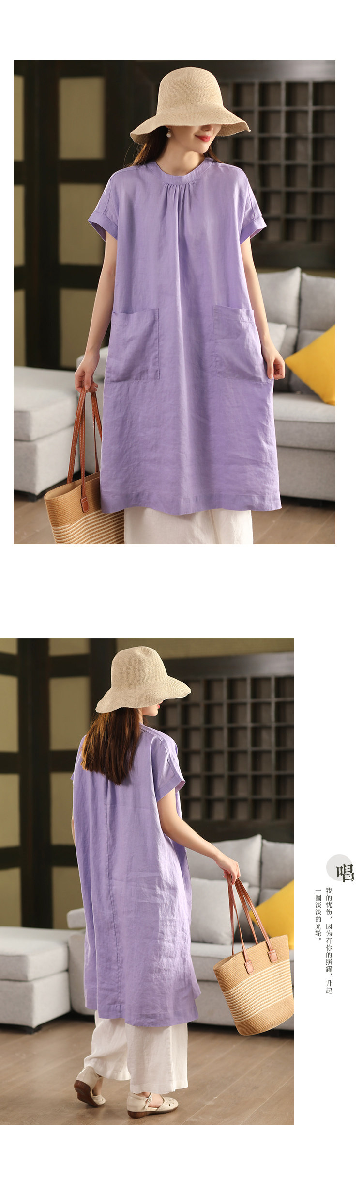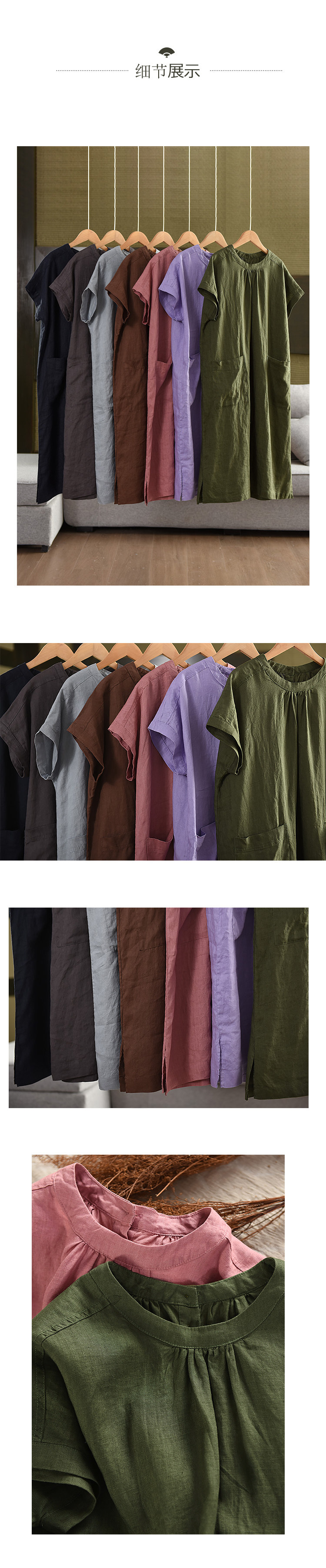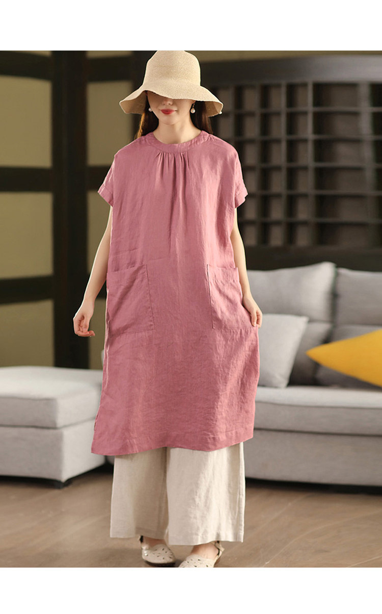 2025 여름 새로운 빈티지 리넨 원피스 여성의 우아한 중간 길이 슬리밍 느슨한 원피스 예술적 리넨 원피스스토어 가기