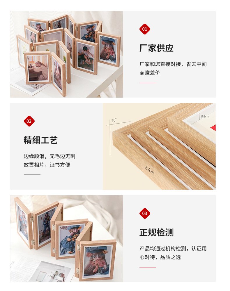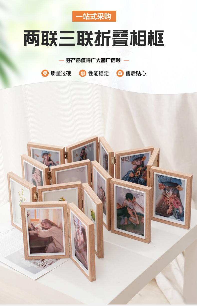 창의적인 디자인의 2단 및 3단 접이식 사진 프레임, 테이블 스크린, 결합된 접이식 커플 사진 세척 조합 선물스토어 가기