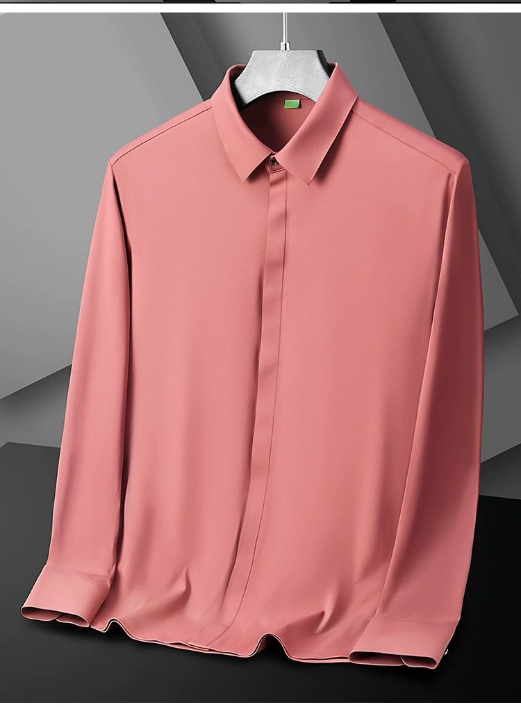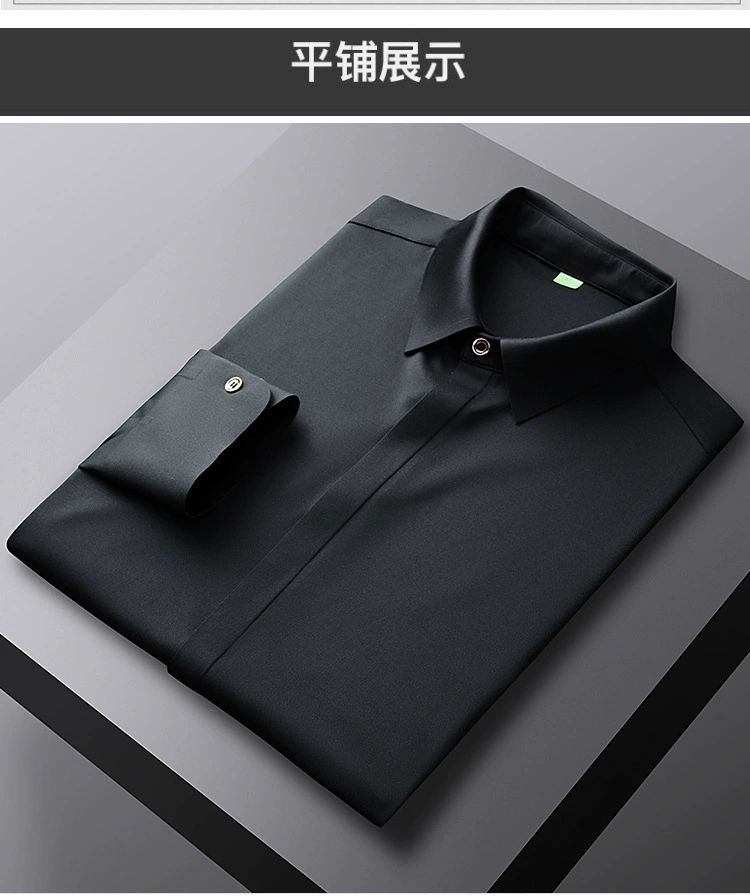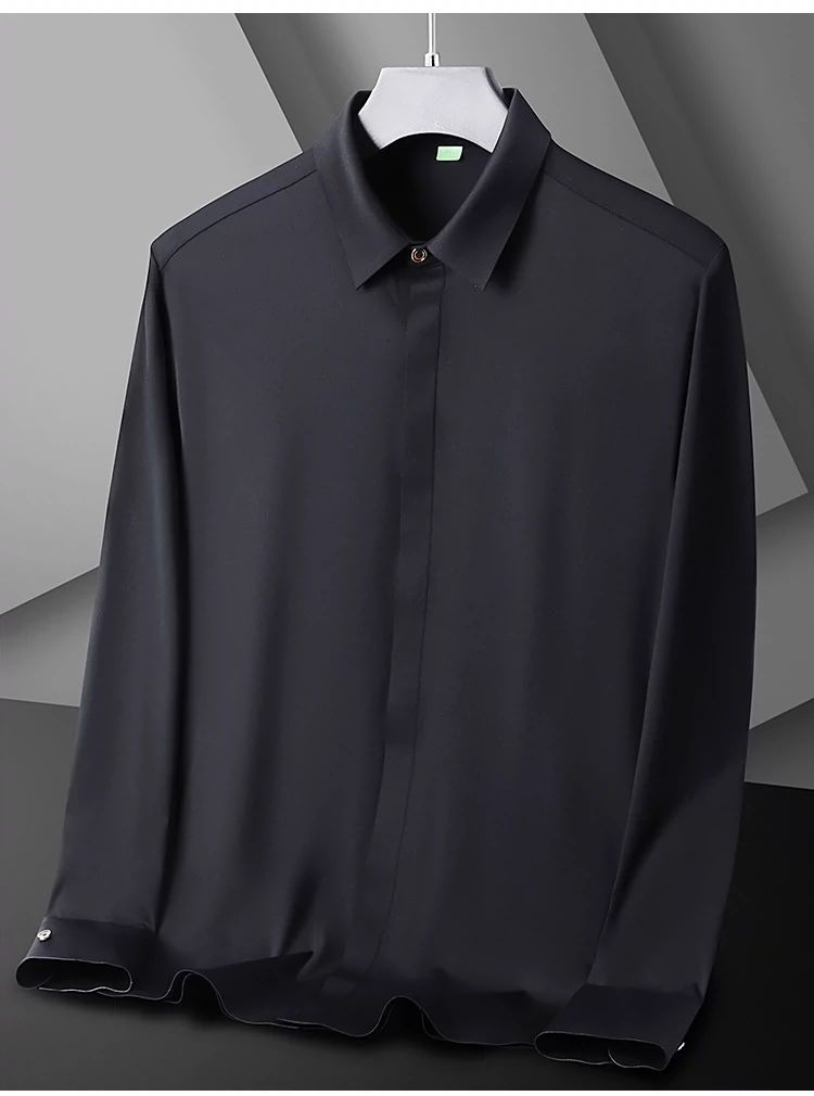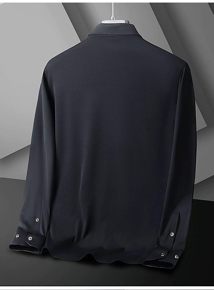 2025 남성용 신축성 있는 무봉제 긴팔 셔츠, 봄, 가을 중년 및 젊은 남성을 위한 노소서 주름 방지 셔츠, 남성용 비즈니스 정장, 인쇄 가능