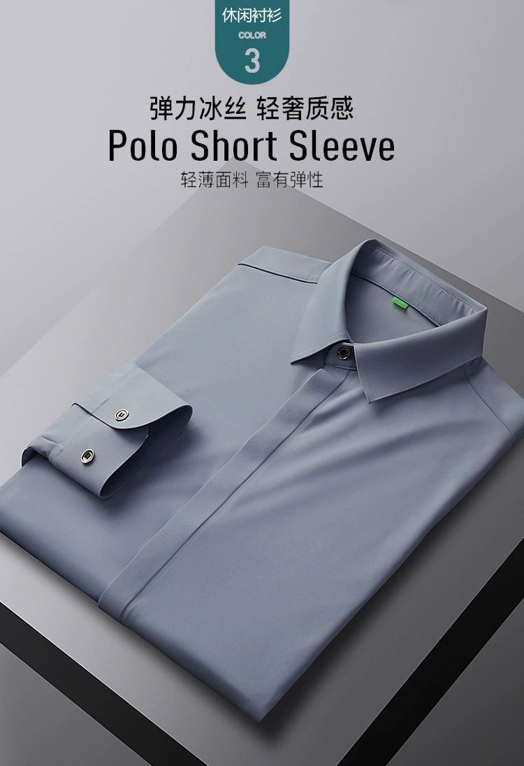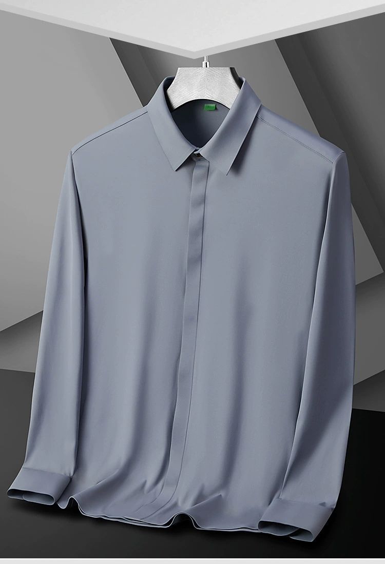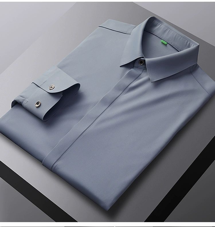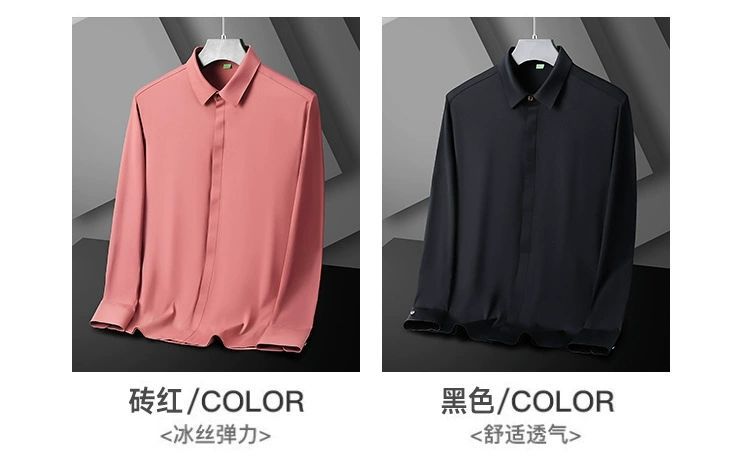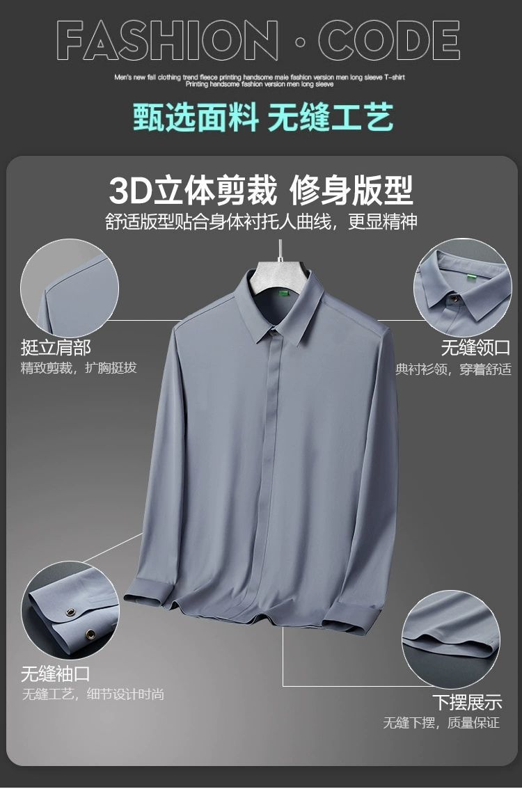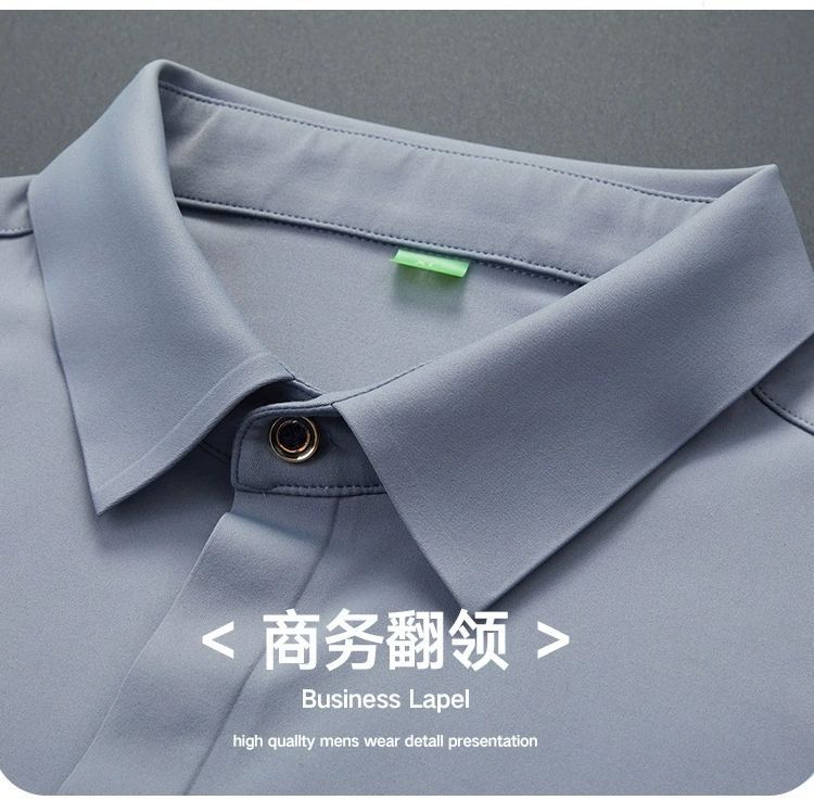 2025 남성용 신축성 있는 무봉제 긴팔 셔츠, 봄, 가을 중년 및 젊은 남성을 위한 노소서 주름 방지 셔츠, 남성용 비즈니스 정장, 인쇄 가능스토어 가기