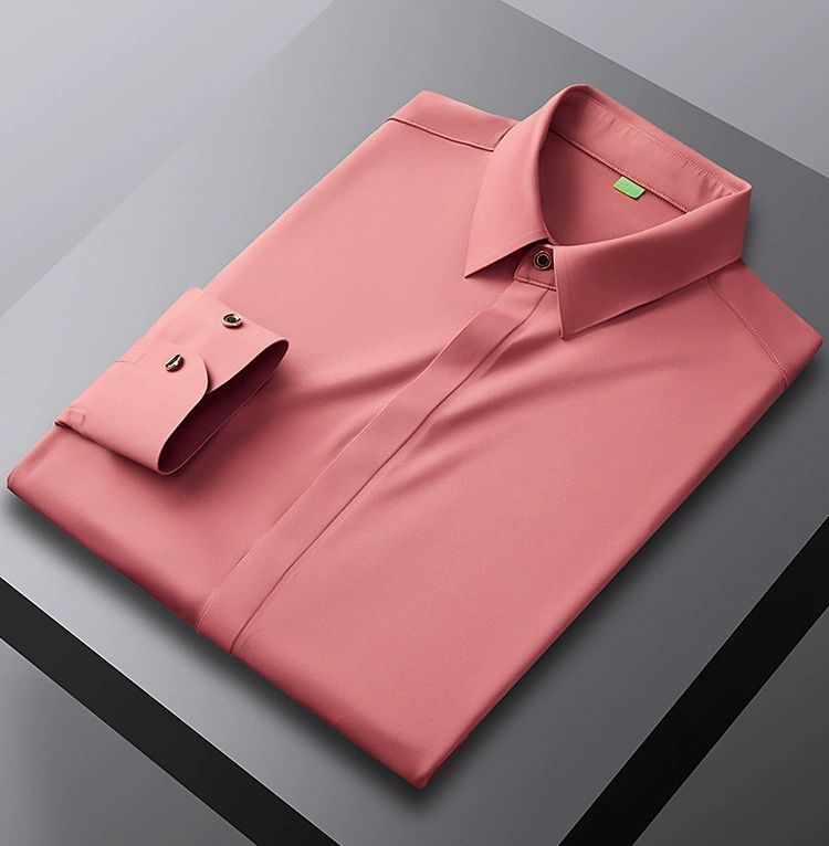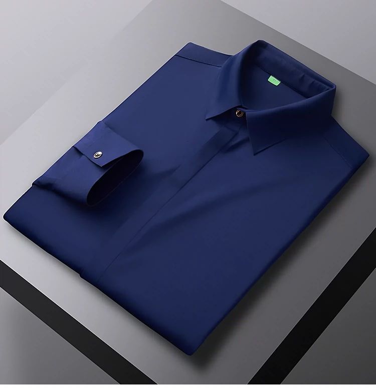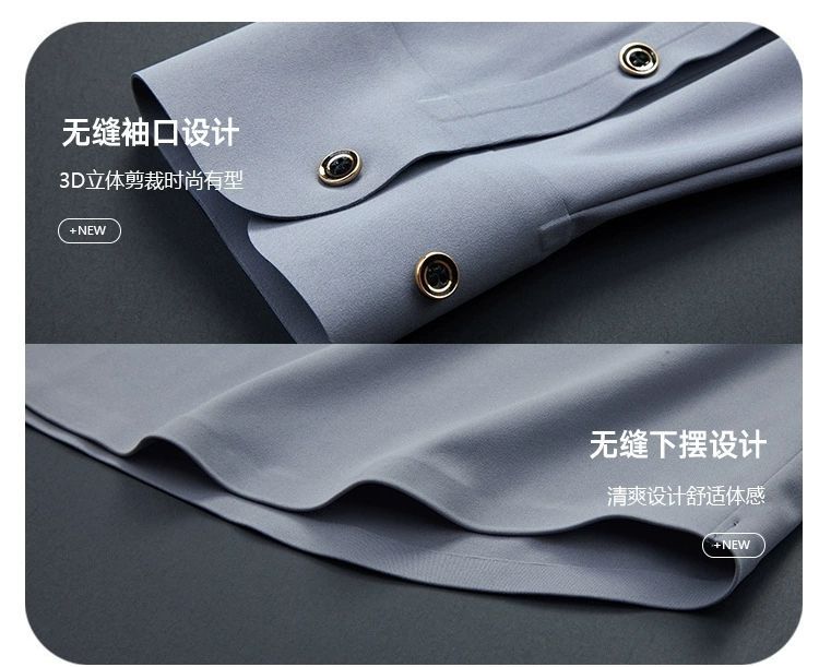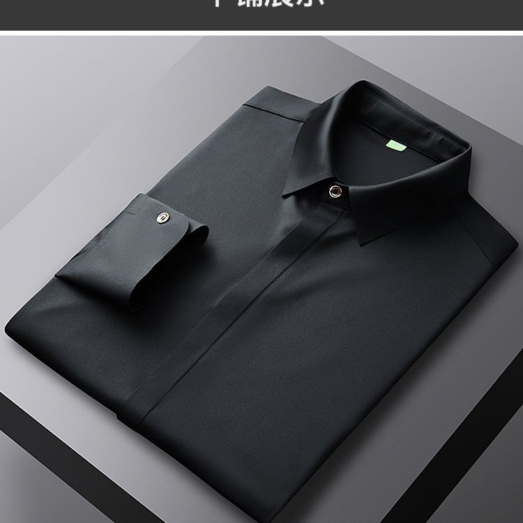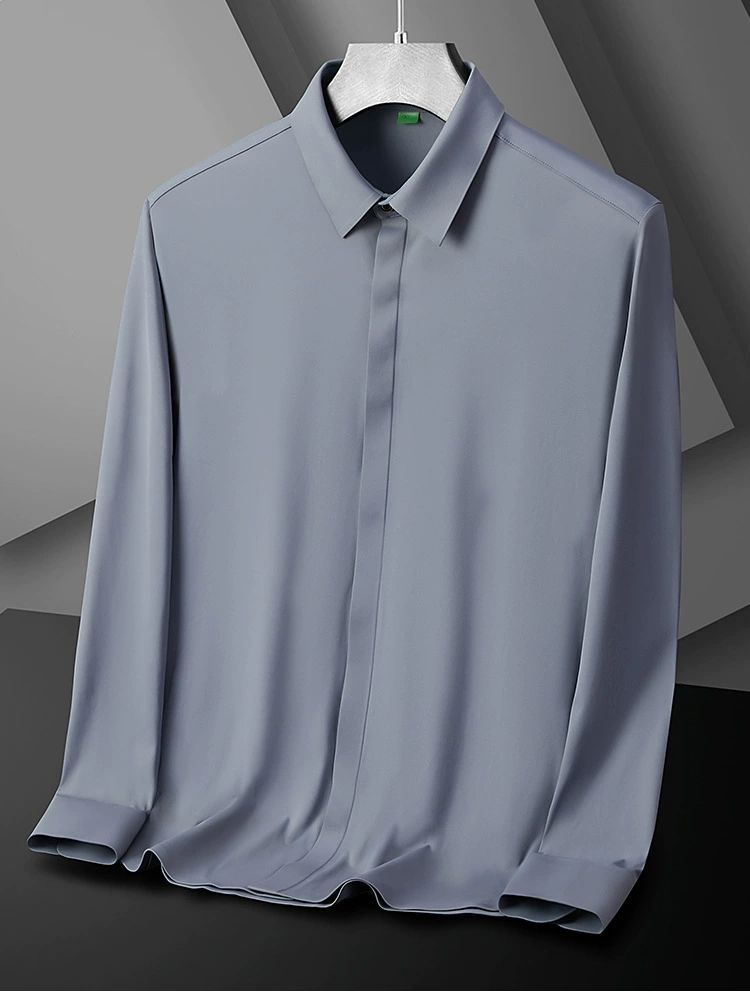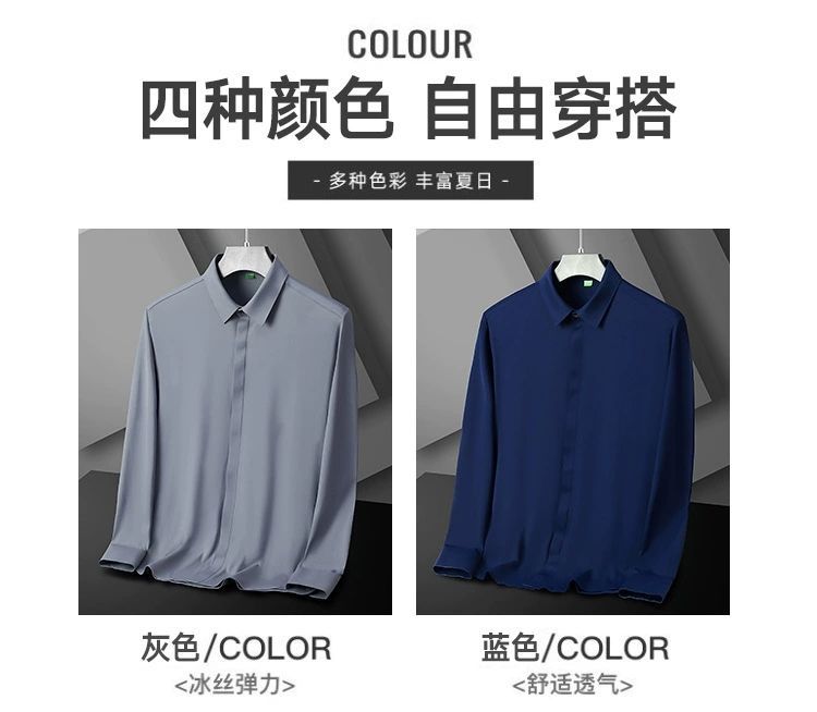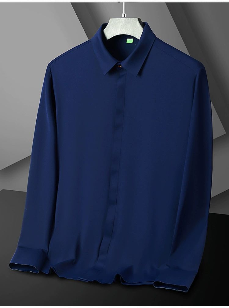 2025 남성용 신축성 있는 무봉제 긴팔 셔츠, 봄, 가을 중년 및 젊은 남성을 위한 노소서 주름 방지 셔츠, 남성용 비즈니스 정장, 인쇄 가능스토어 가기