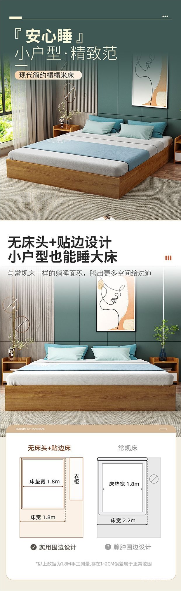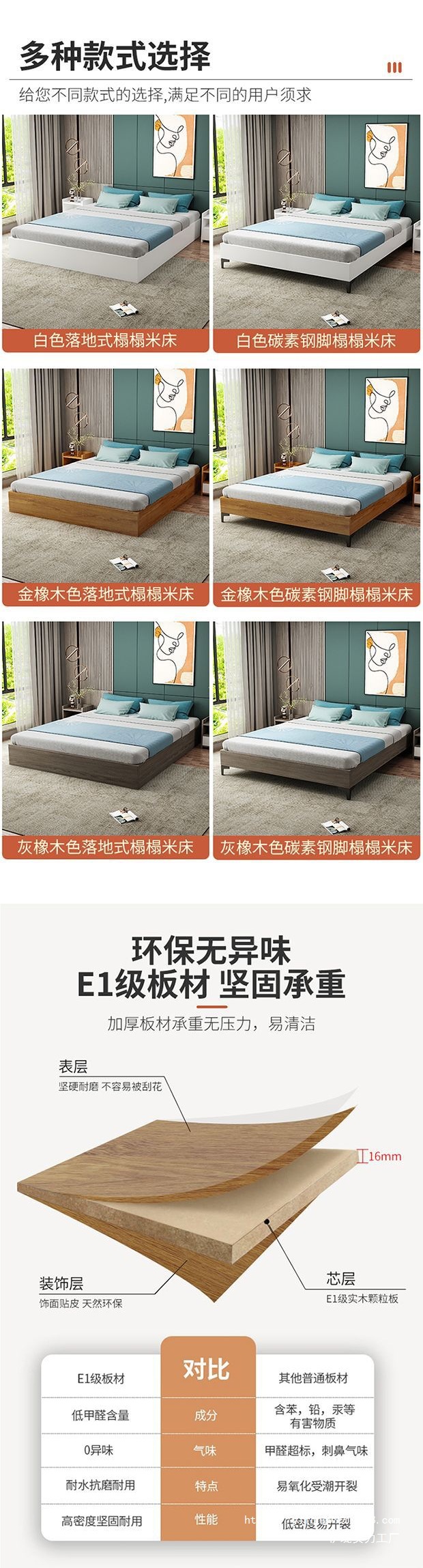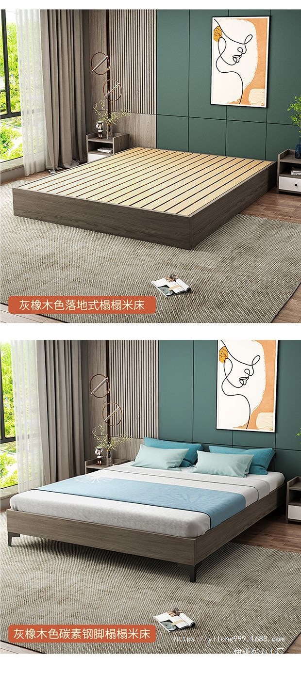 다다미 침대 바닥 형 침대 프레임 두꺼운 강화 침대 빈 선반 프레임 호텔 다다미 침대 홈 침실 침대스토어 가기