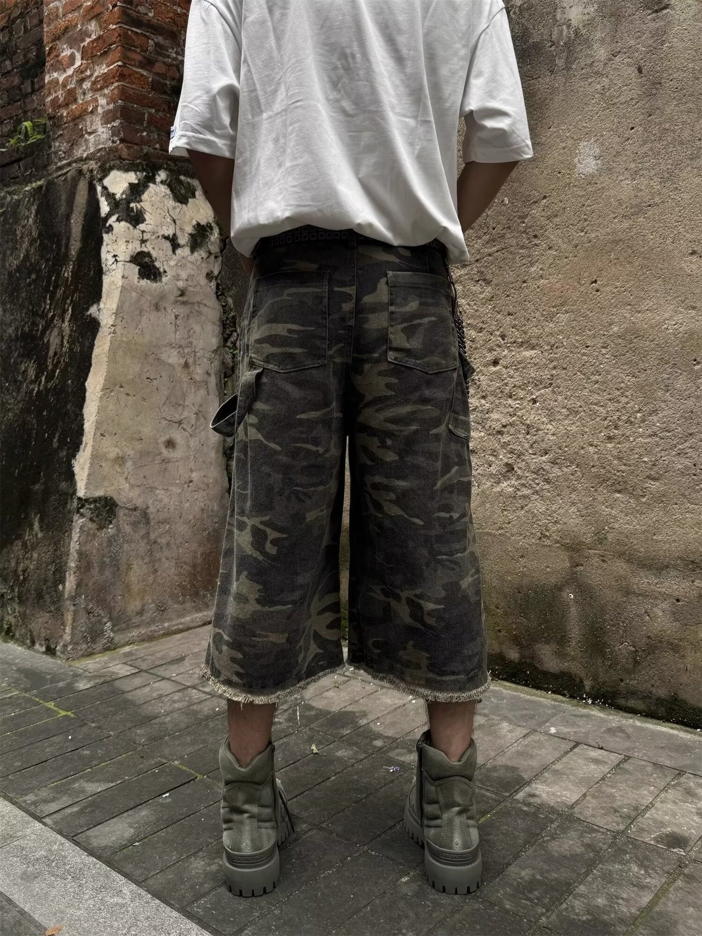 아메리칸 스타일 레트로 위장 반바지 남성 여름 세척 유행 브랜드 바이브 로깅 툴링 바지 하이 스트리트 와이드 레그 크롭 바지스토어 가기